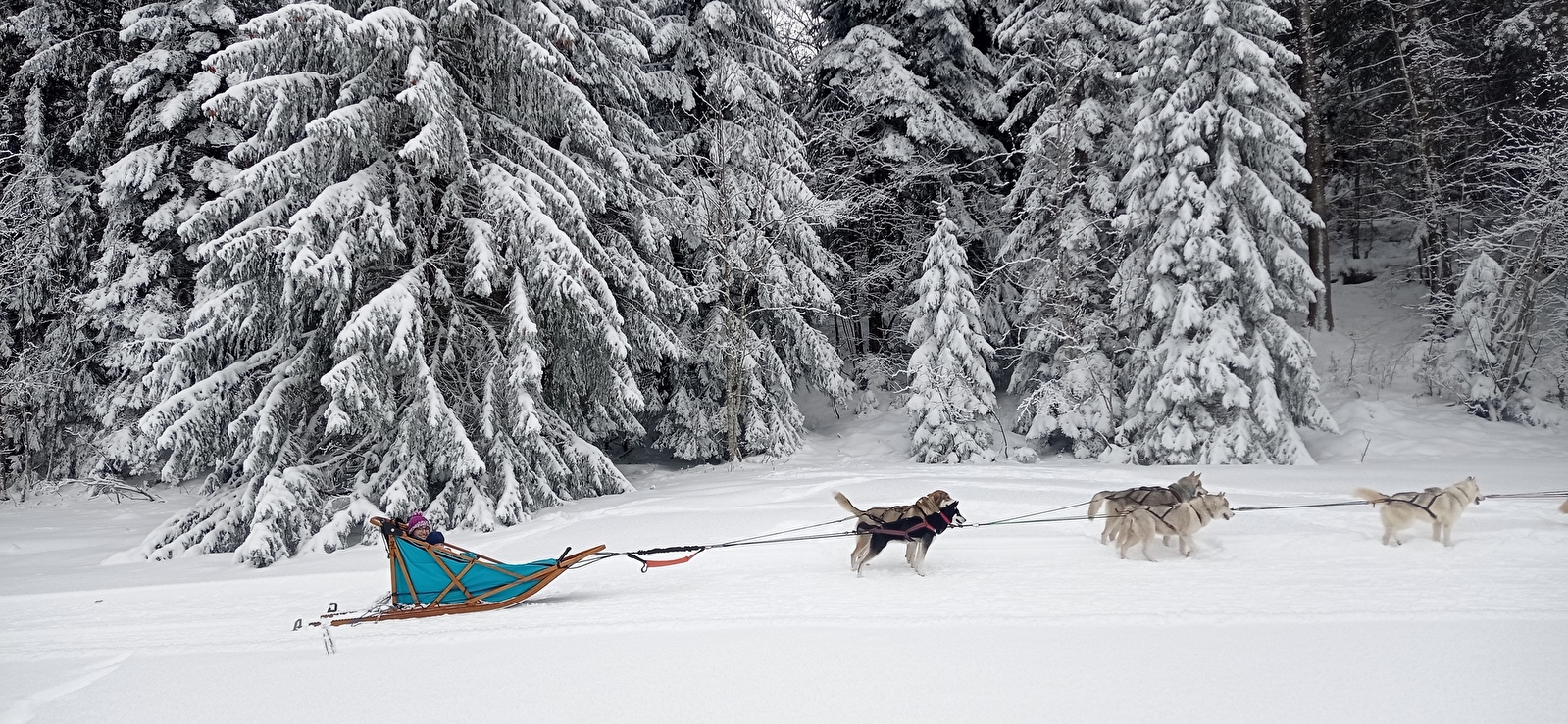 Baptême en traîneau à chiens avec Symbiose chien polaire