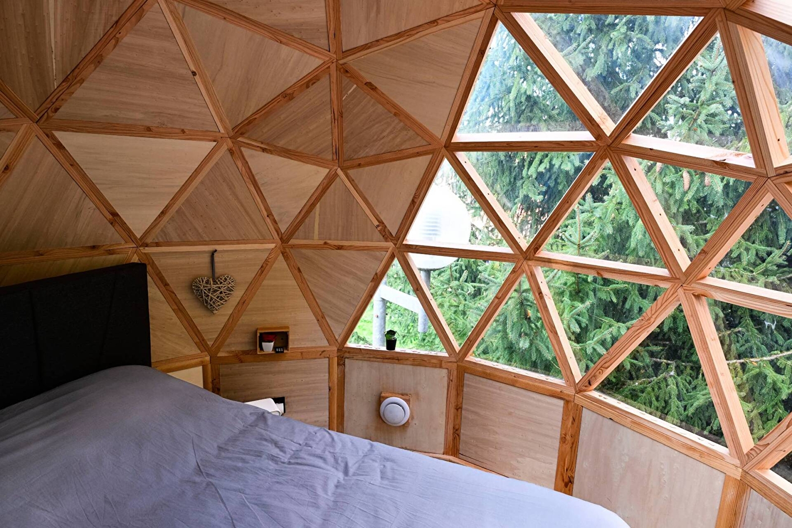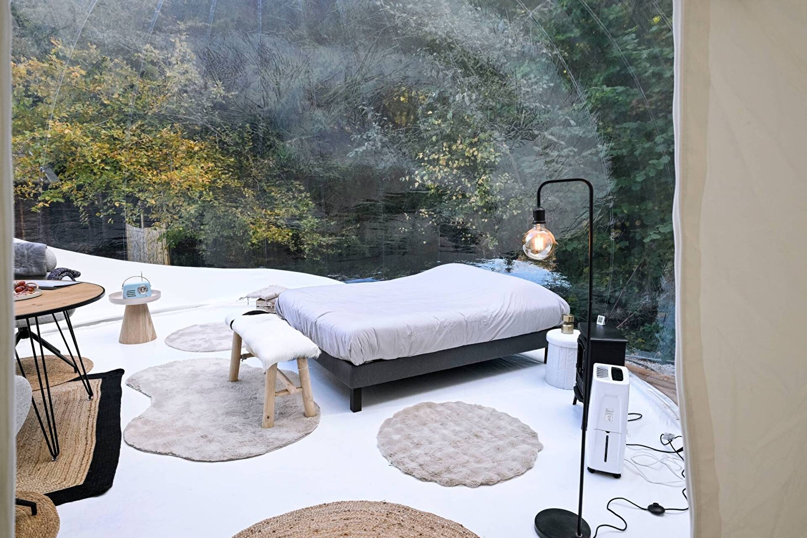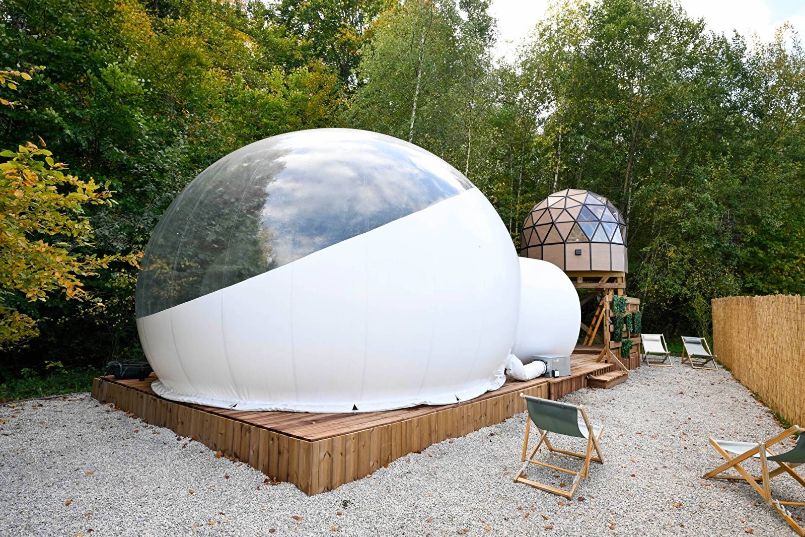 Erliegen Sie dem Charme der großen Kuppel von Olia, einer ungewöhnlichen und geräumigen Unterkunft für 2 bis 4 Personen. Sie ist eine wahre Blase der Ruhe auf zwei Ebenen, deren Transparenz Sie mitten in die Natur eintauchen lässt, für ein märchenhaftes Erlebnis zwischen Himmel und Grün. Entspannen Sie sich in Ihrem eigenen nordischen Bad, genießen Sie die exklusive Terrasse und lassen Sie sich von der Ruhe der Umgebung in den Schlaf wiegen, um einen unvergesslichen Aufenthalt zu erleben.