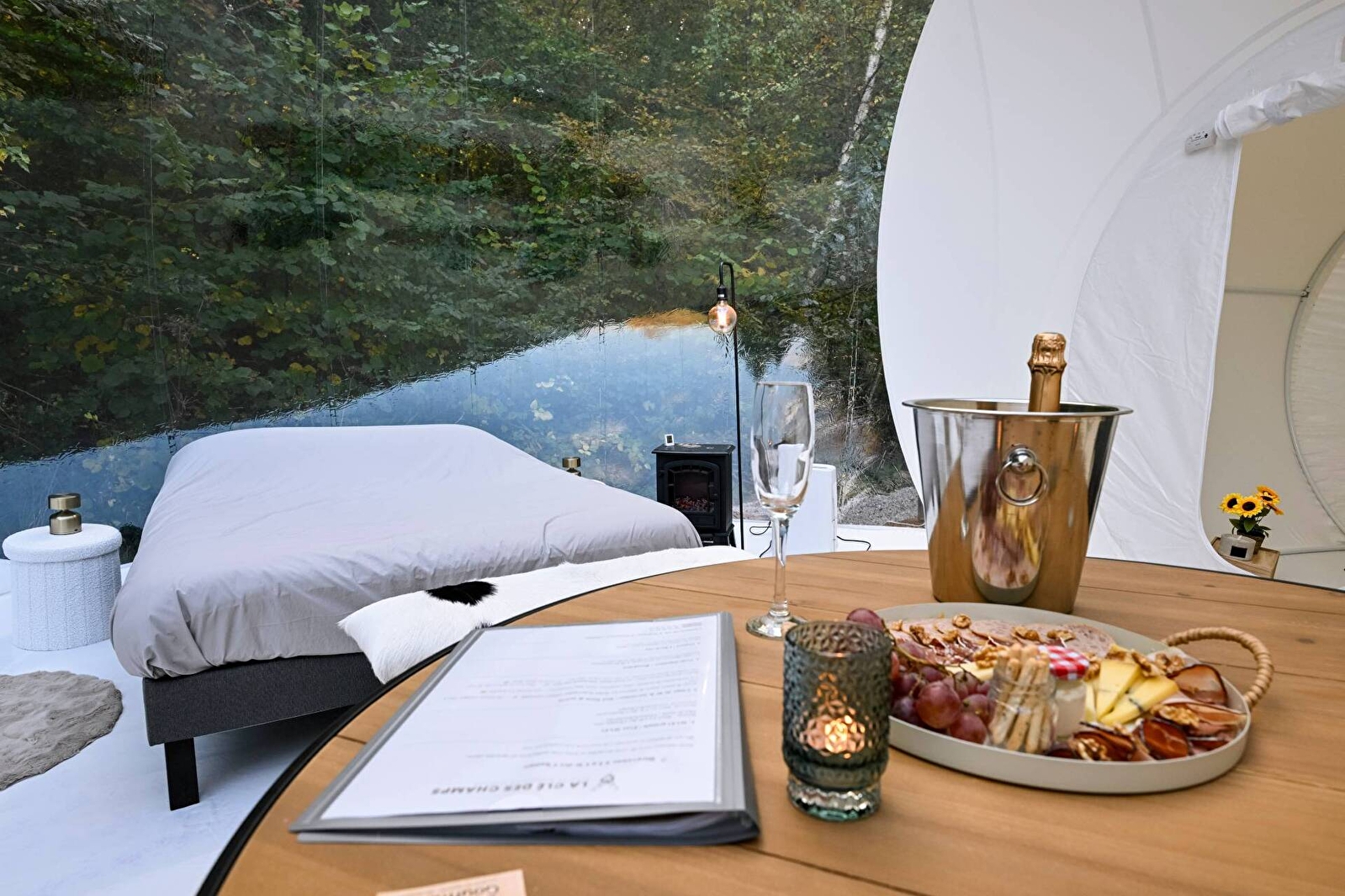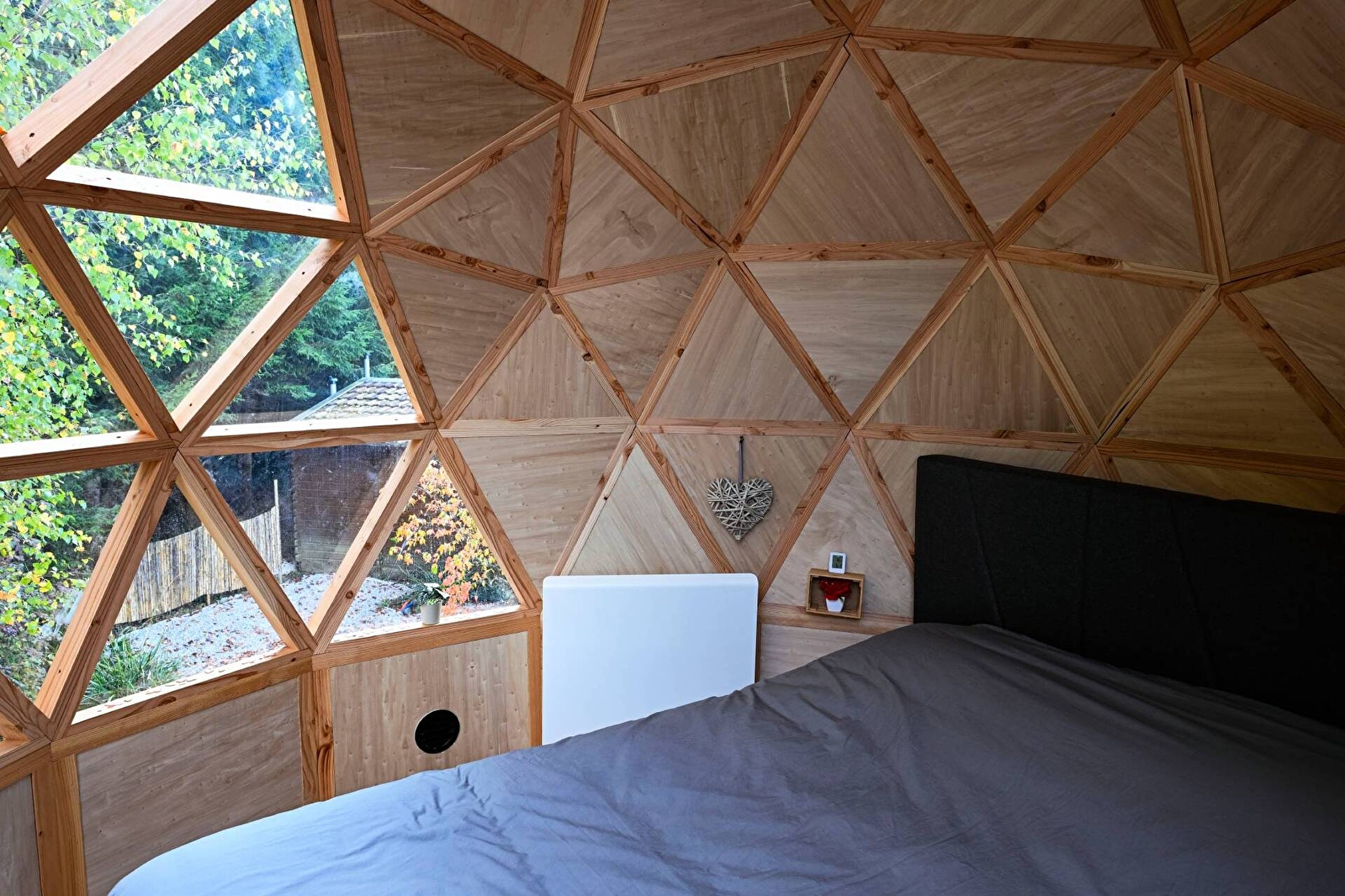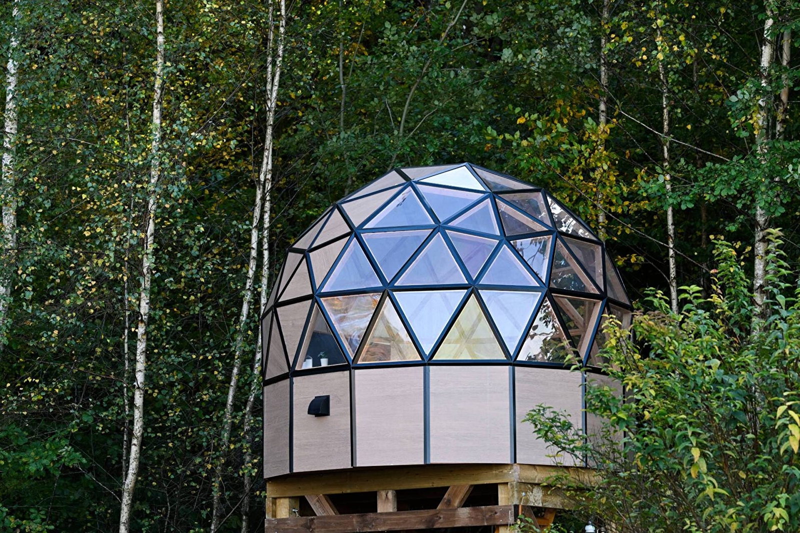 Erliegen Sie dem Charme der großen Kuppel von Olia, einer ungewöhnlichen und geräumigen Unterkunft für 2 bis 4 Personen. Sie ist eine wahre Blase der Ruhe auf zwei Ebenen, deren Transparenz Sie mitten in die Natur eintauchen lässt, für ein märchenhaftes Erlebnis zwischen Himmel und Grün. Entspannen Sie sich in Ihrem eigenen nordischen Bad, genießen Sie die exklusive Terrasse und lassen Sie sich von der Ruhe der Umgebung in den Schlaf wiegen, um einen unvergesslichen Aufenthalt zu erleben.