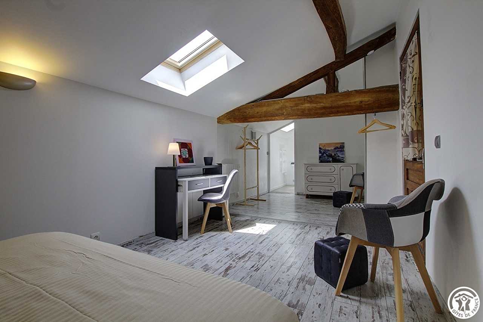 Im Herzen eines Weilers von Servignat, mitten auf dem Land, bietet Emmanuel Ihnen 3 Gästezimmer mit einer sanften und schlichten Dekoration, die sich im Obergeschoss und in der Verlängerung der Residenz der Eigentümer befinden. In diesem alten, komplett renovierten Bauernhaus aus der Bresse gelangen Sie über einen separaten Eingang in einen Wohnraum, von dem aus Sie über eine Treppe zu den Zimmern gelangen. Der Treppenabsatz öffnet sich zum ersten Schlafzimmer mit einem Doppelbett (160*200), das zweite Schlafzimmer ist mit einem Bett (160*200) und einem Einzelbett (geeignet für ein Kind) ausgestattet und das letzte Schlafzimmer verfügt über ein Doppelbett (160). Alle Zimmer verfügen über einen Schreibtisch und ein Badezimmer mit WC, das dem Zimmer zugeordnet ist. Das Frühstück und der Gästetisch (auf Reservierung), die mit lokalen und hausgemachten Produkten zubereitet werden, werden im Sommer auf der überdachten Terrasse oder im Essbereich für die Gäste eingenommen. Ein Entspannungsraum mit Blick auf das Wohnzimmer ist mit einer Bücherecke ausgestattet, in der Sie sich Zeit zum Träumen nehmen können. Für einen Zwischenstopp oder einen längeren Aufenthalt ist der Park mit seinen Bäumen ideal, um sich zu entspannen, im Schatten in den Hängematten und Liegestühlen ein Nickerchen zu machen und die Ruhe des Ortes zu genießen. In der Nähe des Zimmers: Freizeitzentrum von Montrevel (15km), Jachthafen von Pont de Vaux (10km), zahlreiche Wanderwege, für Fahrräder: Voie Bleue (10km) und Traversée (1,5km) sowie zahlreiche Rundwege ... nicht zu vergessen das Angeln in Flüssen, Teichen oder Bächen. Tanken Sie Aktivität, ob groß oder klein, Sie werden bestimmt Ihr Glück finden. Das Auffüllen des Wassers im Pool und die Nutzung durch die Mieter können aufgrund der "Dürre"-Erlasse der Präfektur des Departements Ain eingeschränkt werden.
