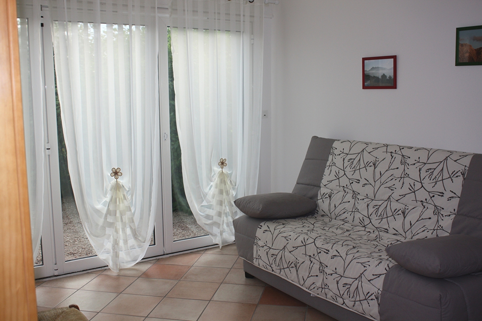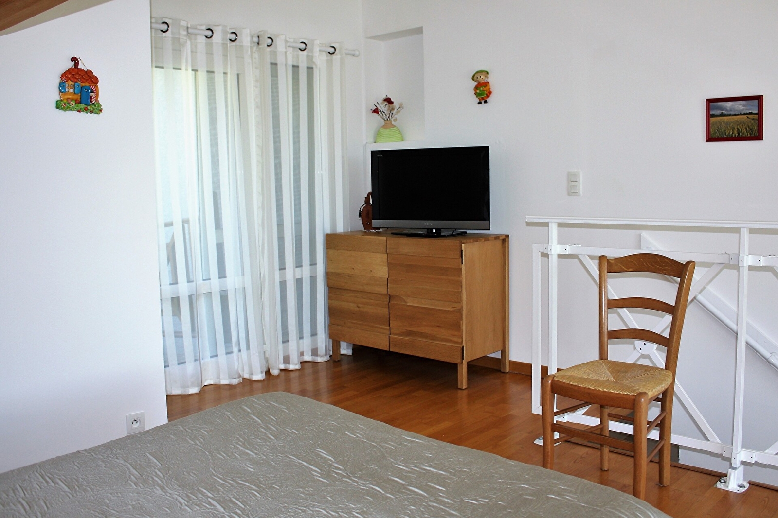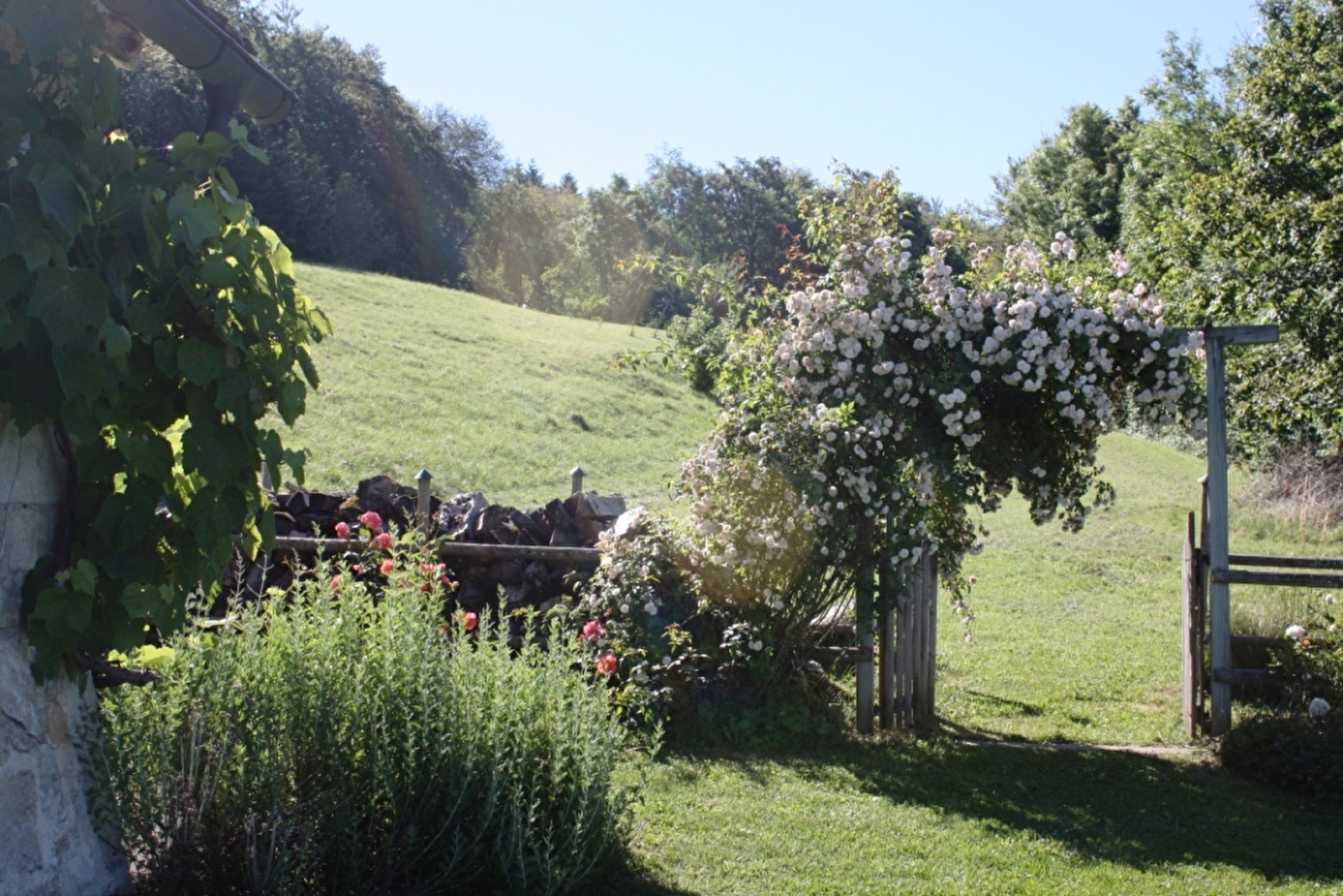 Im Erdgeschoss befinden sich eine Dusche, ein separates WC, ein Schlafsofa (140x190), eine Snack-Ecke mit Wasserkocher, Mikrowelle und Geschirr. Im Obergeschoss befindet sich das Schlafzimmer mit einem Doppelbett, einem WC und einem direkten Zugang zu 1ha Garten in 950m Höhe.
