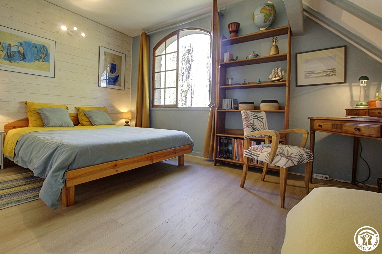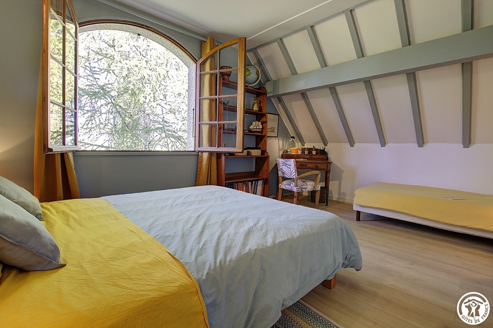 4 km vom Zentrum von Belley entfernt öffnen Pascal und Brigitte die Türen ihres Bugiste-Hauses und bieten Ihnen zwei Zimmer im Obergeschoss an. Von der Eingangshalle aus gelangen Sie über eine Holztreppe zu den Zimmern. Das erste Schlafzimmer für 3 Personen ist mit einem Bett 160*200 und einem 90*190 ausgestattet. Das zweite Schlafzimmer, das an das erste angrenzt, besteht aus einem Doppelbett 160*200. Beide Zimmer verfügen über einen Schreibtisch und ein eigenes Badezimmer (mit WC), das sich auf demselben Treppenabsatz befindet, aber nicht an das Zimmer angrenzt, und Bademäntel werden für mehr Komfort angeboten. Auf dieser Etage befinden sich die beiden Gästezimmer sowie ein Privatbereich für die Eigentümer (Büro und ein Zimmer, das der Familie vorbehalten ist). Auf derselben Ebene befindet sich eine Entspannungsecke mit Fernseher und Tablett für die Gäste. Das Frühstück und der Gästetisch oder die Lunchpakete (auf Reservierung) werden an schönen Tagen auf einer der drei Terrassen oder im Essbereich eingenommen. Bei einem Zwischenstopp oder einem längeren Aufenthalt können Sie sich im großen Park erholen und die Ruhe des Ortes genießen. Ein Parkplatz für zwei Autos (nicht gesichert) ist vor dem Haus reserviert. Für Liebhaber von Zweirädern gibt es einen geschlossenen Raum für Fahrräder und oder Motorräder. In 500 m Entfernung bietet Ihnen der Wald von Rothone schöne Spaziergänge. Sie können auch Belley entdecken, eine bodenständige Region mit Kapellen, Waschhäusern, Brotbacköfen und Weingütern. Diese ehemalige Hauptstadt des Bugey, ist ideal von Seen, Flüssen und Bergen umgeben, die Naturliebhaber glücklich machen werden. Lassen Sie sich zum Massiv des Grand Colombier und der Via Rhôna entführen, um schöne Wanderungen zu unternehmen, zu angeln und die Produkte der Region zu entdecken. Grenzgebiet zu Savoyen mit Lac du Bourget, Aix les Bains, Chambéry.