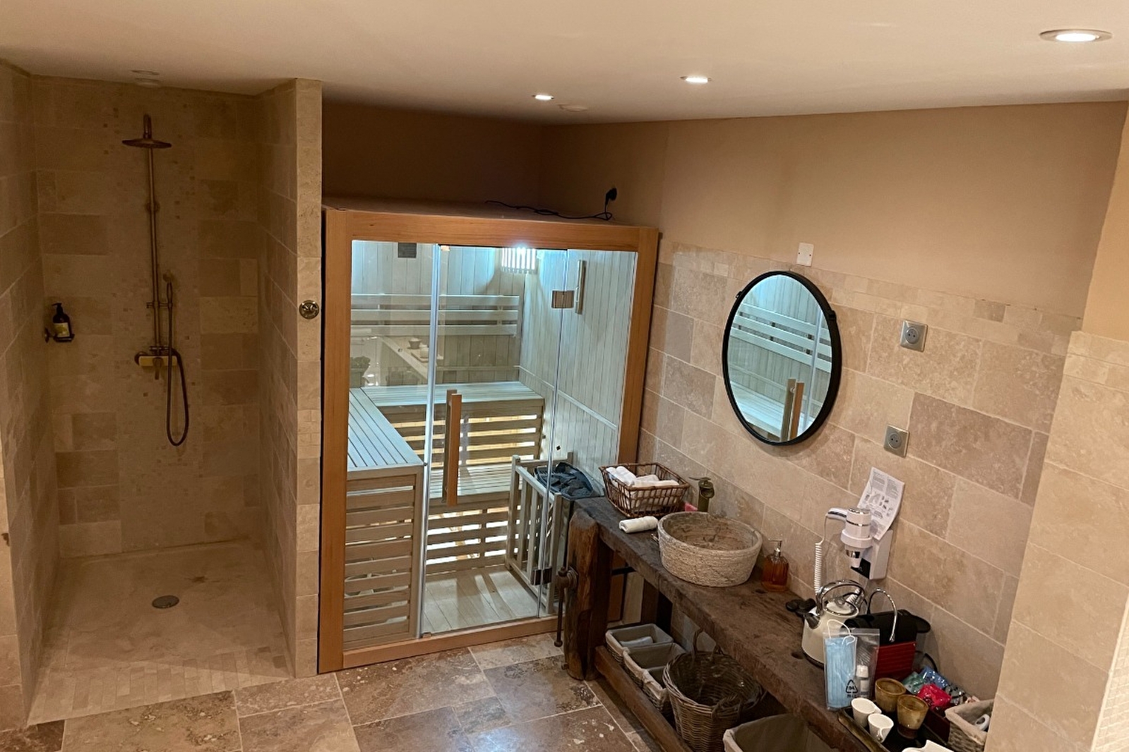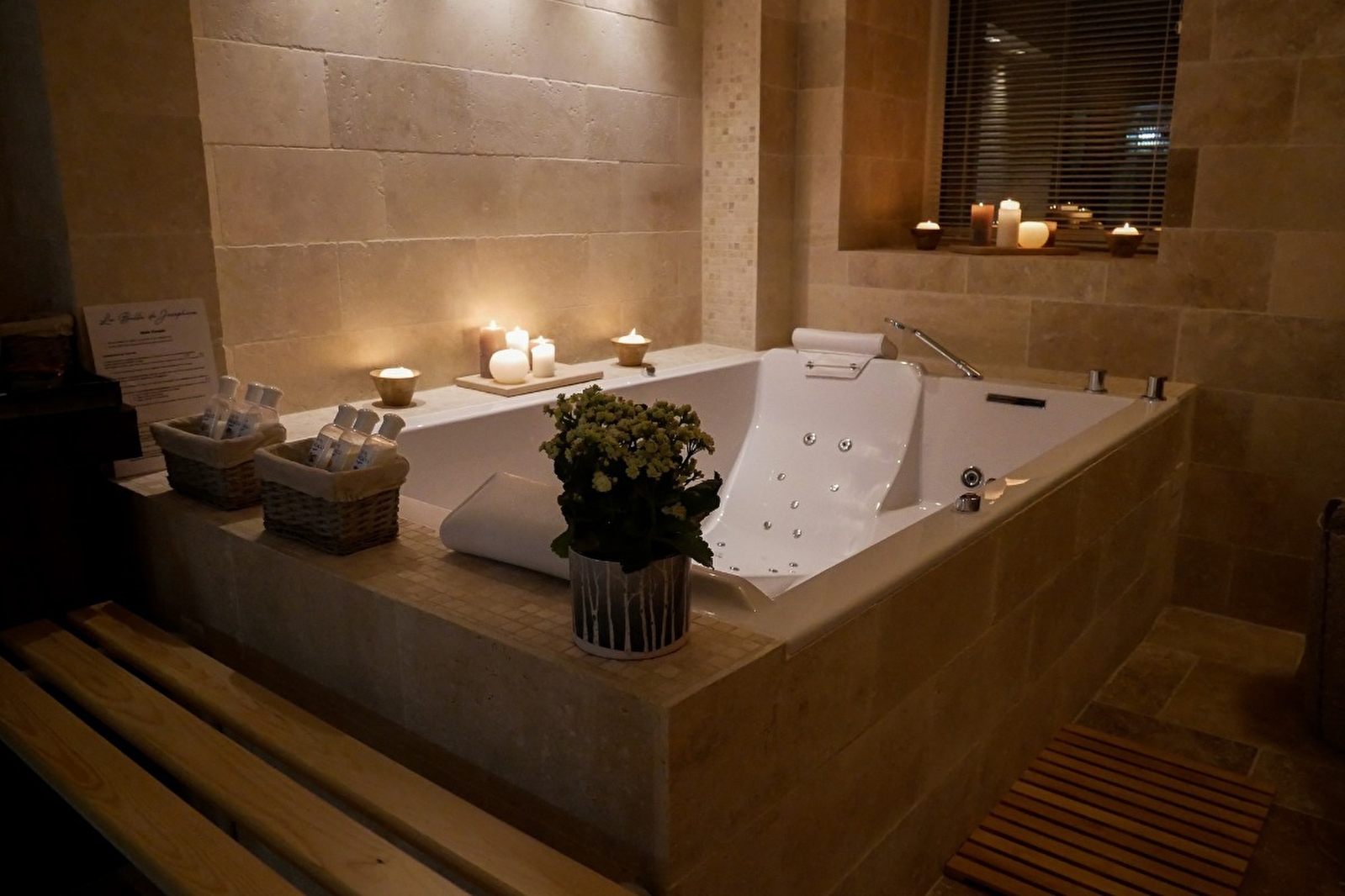 Eine oder zwei Nächte, um als Paar eine Pause zu machen? Entdecken Sie "La Bulle de Joséphine", ein atypisches Zimmer in einem authentischen Rahmen, nur einen Steinwurf von Ihrem Haus entfernt ... Ein 40m2 großer Raum auf zwei Ebenen, der der Erholung gewidmet ist, mit einem Balneo-Sauna-Bereich im Erdgeschoss und einem Cocooning-Zimmer im Obergeschoss. Hochwertige Bettwäsche, 180x200. In einer beruhigenden, warmen Umgebung können Sie die Wohltaten der Balneotherapie zu zweit genießen. Die Badewanne ist zu 100 % französisch und entspricht den Anforderungen an Ergonomie und Komfort. Die Balneotherapiebehandlung dient dem Komfort, der Entspannung oder der Stärkung der Muskeln. Sie ermöglicht > Muskelentspannung > Verbesserung der Blutzirkulation > Entspannung Verbinden Sie die Vorteile der Farbe mit der Chromotherapie, um angenehme Lichteffekte zu erzeugen. Ein Saunabesuch ist ein Moment der Entspannung für Körper und Geist. Die Vorteile liegen in der extremen Temperatur, der man seinen Körper aussetzt, und im Wechsel von heiß und kalt. Bademäntel und Hausschuhe werden kostenlos zur Verfügung gestellt, ebenso wie eine Tee-Kaffee-Bar. Das Frühstück ist im Preis inbegriffen. Gegen Aufpreis und nach vorheriger Reservierung: Abendessen mit lokalen Produkten (Wurstwaren, Käse, Getränke).