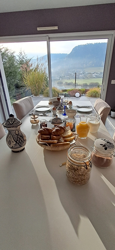 Entspannen Sie sich in dieser ruhigen und eleganten Unterkunft. In seiner natürlichen Umgebung ,umgeben von Tannenbäumen und einem außergewöhnlichen Blick auf den See von Chaillexon, ein Ort, an dem Sie sich entspannen und in einem stillen Ort ausruhen können. Zimmer und Badezimmer mit allem Komfort öffnen sich auf eine große Südterrasse mit herrlichem Blick auf den See.