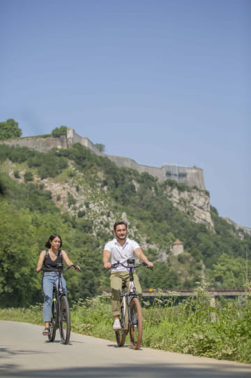 Anschließend schwingen wir uns aufs Fahrrad, fahren auf derr EuroVélo 6 qui traverse Besançon und unternehmen einen Ausflug aufs Land ganz in der Nähe. Ein Fluss, das idyllische Tal des Doubs, eine perfekt gesicherte Fahrradstraße - und das alles vor den Toren der Stadt!