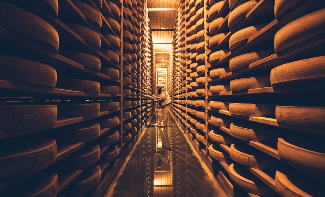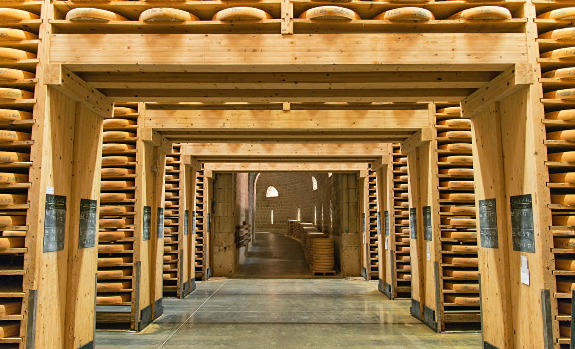 Um eine so weiche Textur und einen perfekt ausgewogenen Geschmack zu erhalten, muss der Comté mindestens vier Monate reifen. In der Stille und dem Halbdunkel dieser Reifekeller entwickelt sich der Comté, bevor er zur Reifung gelangt. Die Temperatur und die Luftfeuchtigkeit werden dort sorgfältig kontrolliert: zwischen 12 und 16 Grad, um einen ausgezeichneten Comté herzustellen.