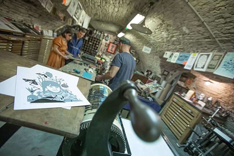 Besuch der Werkstatt für traditionelle Typografie Affiche MoilkanWährend der Besichtigung des historischen Stadtkerns ist ein Halt in der Werkstatt Affiche Moilkan angebracht, einer handwerklichen Druckerei, die Buchdruck- und Linolschnitttechniken verwendet. Wie der Name schon sagt, entwirft die Werkstatt Affiche Moilkan ... Plakate und hat eine Vorliebe für Wortspiele.