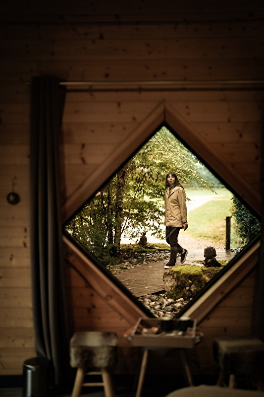 * Zwei Pod-Hütten, kleine runde Holzhütten von 9 m2, die komplett ausgestattet sind, vervollständigen das Angebot an ungewöhnlichen Unterkünften für Wanderer und Durchreisende.