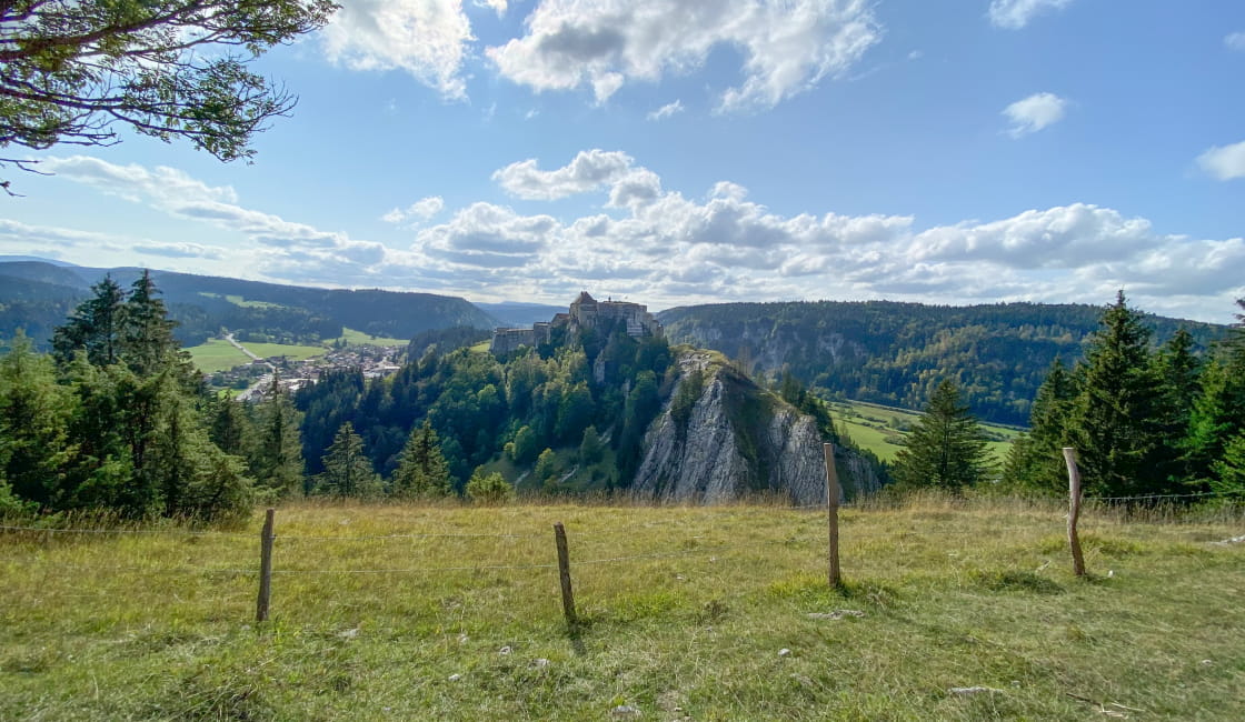 Auf der anderen Seite der Schlucht von Pontarlier gibt es eine Stelle, von der aus man eine atemberaubende Aussicht auf das Château de Joux hat. Die Gelegenheit für einen Spaziergang (an bequeme Schuhe denken), bei dem man ein wenig Luft schnappen kann, bevor man die Landschaft bewundert.