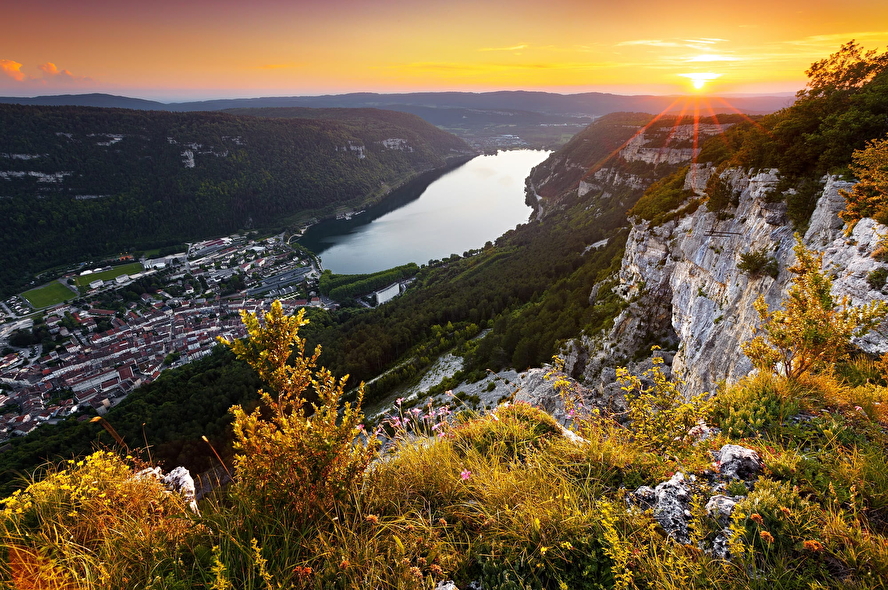 Nantua ist perfekt gelegen. Hoch oben auf schwindelerregenden Kalksteinfelsen, die zu spektakulären Spaziergängen einladen. In seinem Herzen befindet sich ein legendärer Gletschersee und eine Altstadt, die Besucher mit Geschichte, Kultur und Gastronomie in ihren Bann zieht.