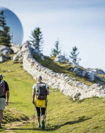 Ein 8 km langer Rundweg ab Les Rousses ermöglicht es, dieses Naturgebiet zu erkunden. Auf dem Weg zum Gipfel wandern Sie auf der Schweizer Seite entlang.