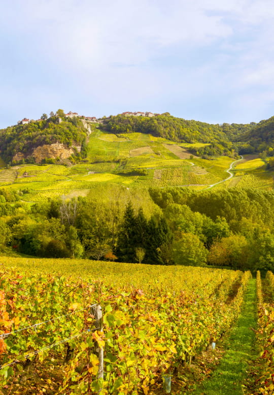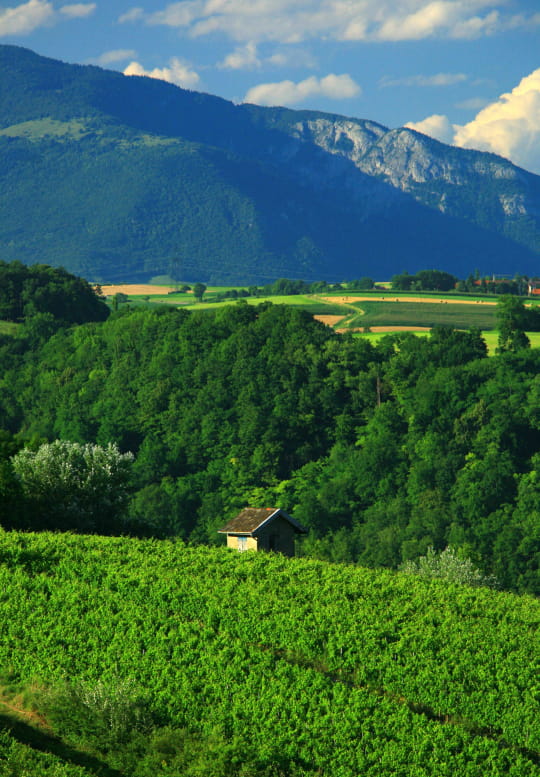 An den ersten Ausläufern des Jura, inmitten grandioser Landschaften, umhüllen die Rebzeilen die Hänge zwischen steilen Felswänden, engen grünen Tälern und charmanten Dörfern.