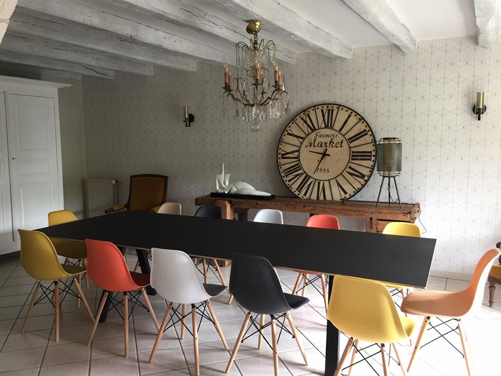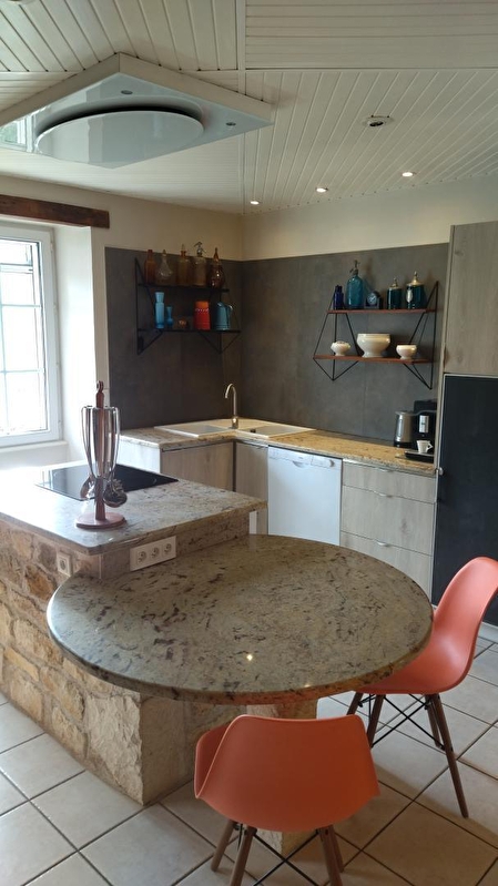 Im Geburtsort von Louis Vuitton, unabhängiges Haus. Im Erdgeschoss: Terrasse, Einbauküche, großes Wohnzimmer, DVD-Player, Stereoanlage, CH1: 1 Doppelbett, CH2: 2 Einzelbetten, CH3: 1 Doppelbett, Badezimmer (Badewanne und Dusche), separates WC. Stock: CH4: 1 Doppelbett (160x200), 1 Doppelbett, Badezimmer mit integriertem WC, Fußbodenzentralheizung, Waschküche im Untergeschoss, Wäschetrockner, Gartenmöbel, Grill, Tischtennisplatte, großes geschlossenes Grundstück mit Obstbäumen, Hof. Miete von Bettwäsche: 11€/Bett. Reinigungspauschale: 80€. Alle Nebenkosten inbegriffen. Kurtaxe: 5€/Nacht. Jacuzzi zur Verfügung