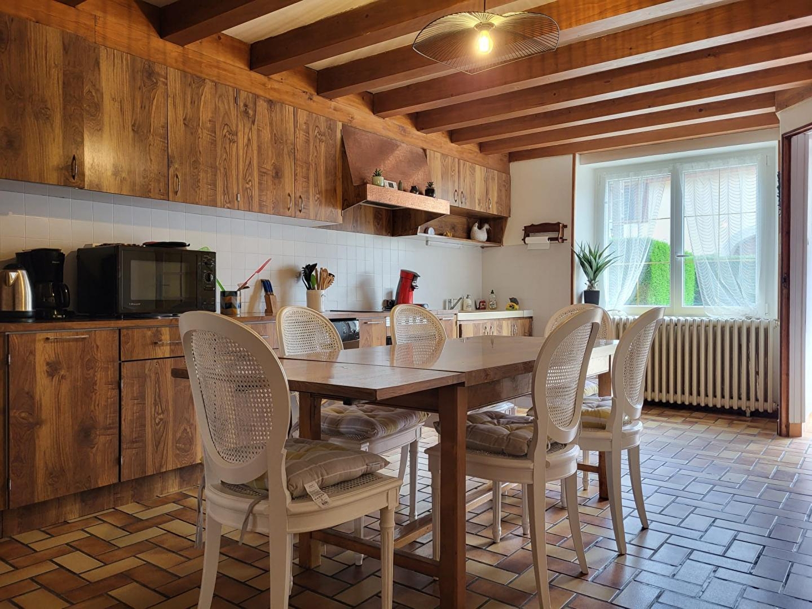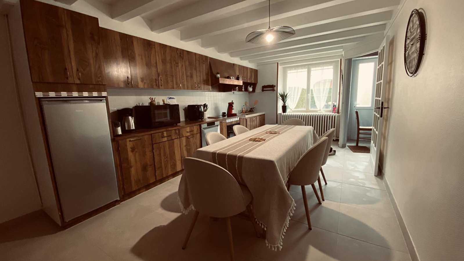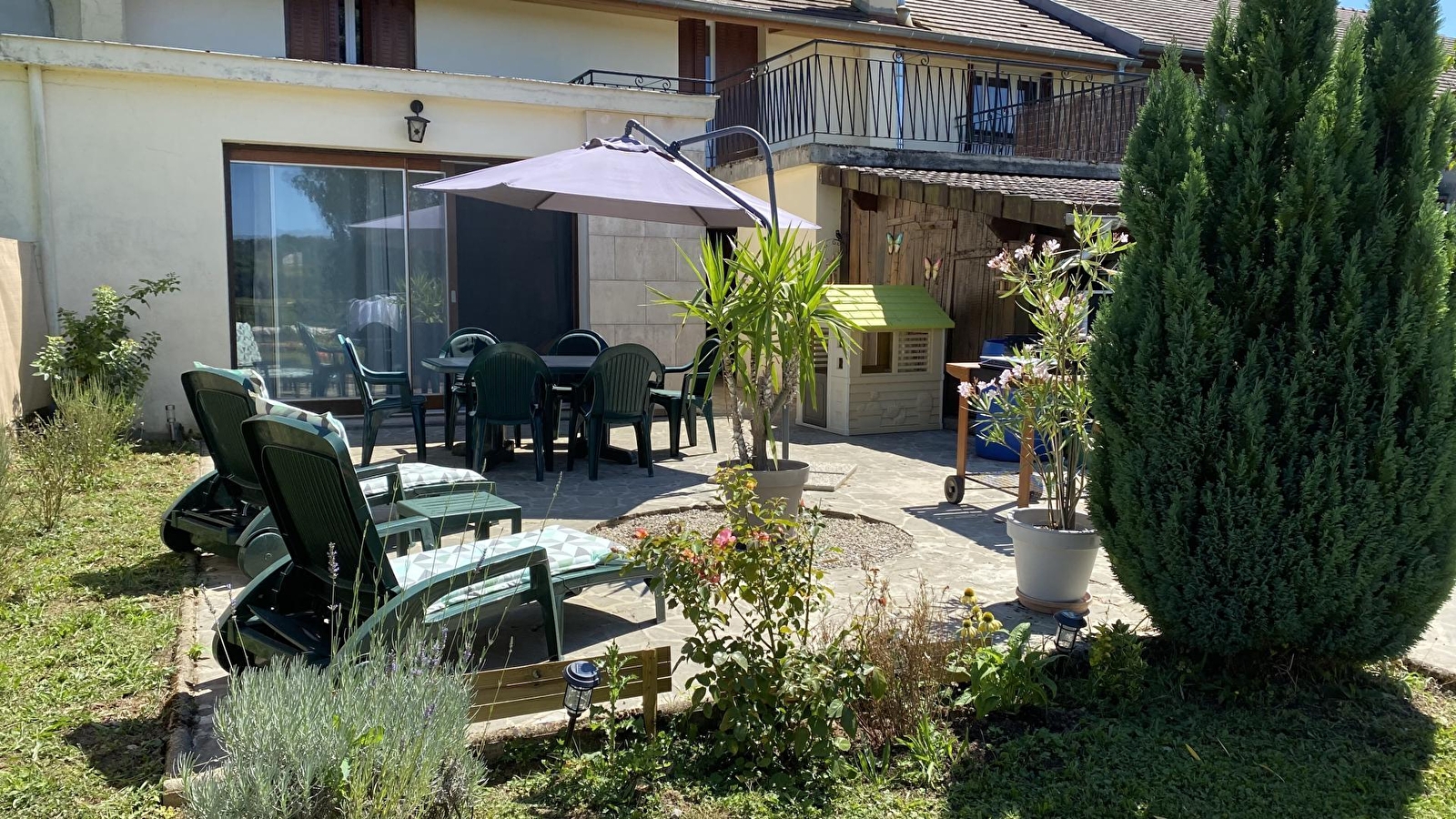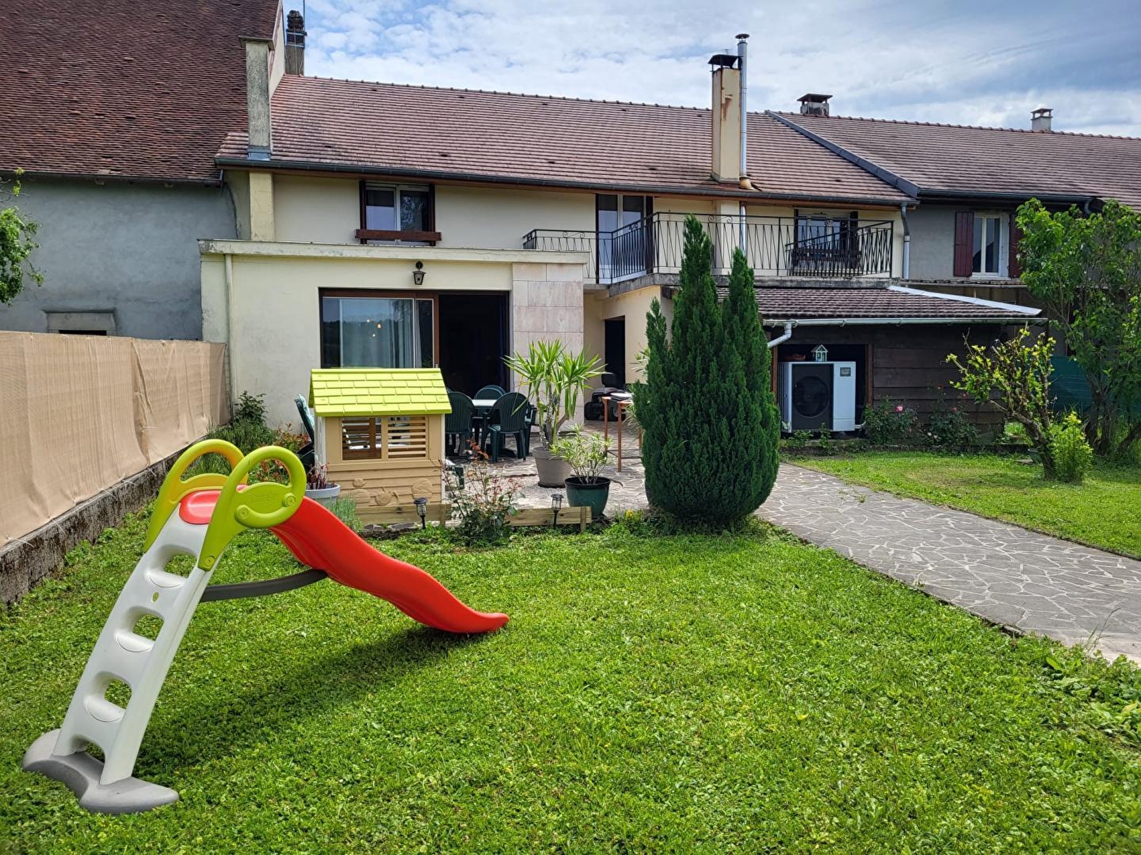 Dieses Reihenhaus bietet Ihnen allen Komfort, den Sie brauchen, um sich mit Ihrer Familie oder Ihren Freunden zu treffen. Im Erdgeschoss befinden sich eine voll ausgestattete Küche, ein Esszimmer, ein Wohnzimmer mit Fernseher und direktem Zugang zur Terrasse und zum Garten, ein Badezimmer mit Badewanne und ein separates WC. Im Obergeschoss befinden sich 3 Schlafzimmer: eines mit einem Doppelbett (140*190) und die beiden anderen mit einem Doppelbett (140*190) bzw. einem Einzelbett (90*190), Badezimmer mit Duschkabine und WC. Im Außenbereich können Sie die Terrasse und den Garten mit Gartenmöbeln, Liegestühlen, Grill und Kinderspielgeräten (kleines Baumhaus und Rutsche) nutzen. Ideal gelegen, 15 Minuten von der Kurstadt Lons le Saunier entfernt, können Sie auch die Strände der Seen und Clairvaux-les-lacs in ca. 20 Minuten erreichen.