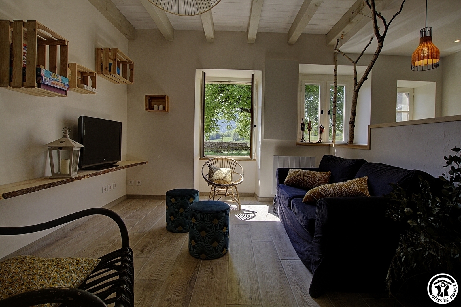 Am Eingang des Weilers Le Crozet wurde die Unterkunft "Au Tilleul" in einem ehemaligen Bauernhaus vollständig renoviert, um Ihnen eine qualitativ hochwertige Unterkunft mit einer Dekoration zu bieten, die Pflanzen, Holz und Metall harmonisch miteinander verbindet. Der Eingang zum Grundstück erfolgt über den Hof und den Privatgarten der Unterkunft, dann über eine überdachte Terrasse. Der Haupteingang, der an eine Scheune angrenzt, führt zu einem großen Wohnraum mit einer ausgestatteten Küche, die zum Wohn- und Esszimmer hin offen ist. Eine Treppe führt in den ersten Stock zu einem Treppenabsatz mit Bürobereich, der sich zu zwei Schlafzimmern öffnet, darunter ein Schlafzimmer mit einem Bett von 140*200 und ein zweites Schlafzimmer mit einem Bett von 140*200 und einem Bett von 90*190. Ein Badezimmer und ein WC vervollständigen dieses Objekt. Die Wohnung wird elektrisch beheizt. Vorteil dieses Objekts: Die Betten sind bei der Ankunft gemacht, die Nebenkosten sind im Preis inbegriffen. Um die der Unterkunft gewidmeten Außenbereiche zu nutzen, verfügen Sie über einen Parkplatz, der sich 20 m von der Unterkunft entfernt befindet. Die Unterkunft befindet sich in der Nähe der Seen und Weinberge des Bugey-Gebiets. Sportbegeisterte können die Viarhôna entdecken (8 km entfernt), einen Radweg entlang der Rhône A 8 km. Kein Handyempfang.