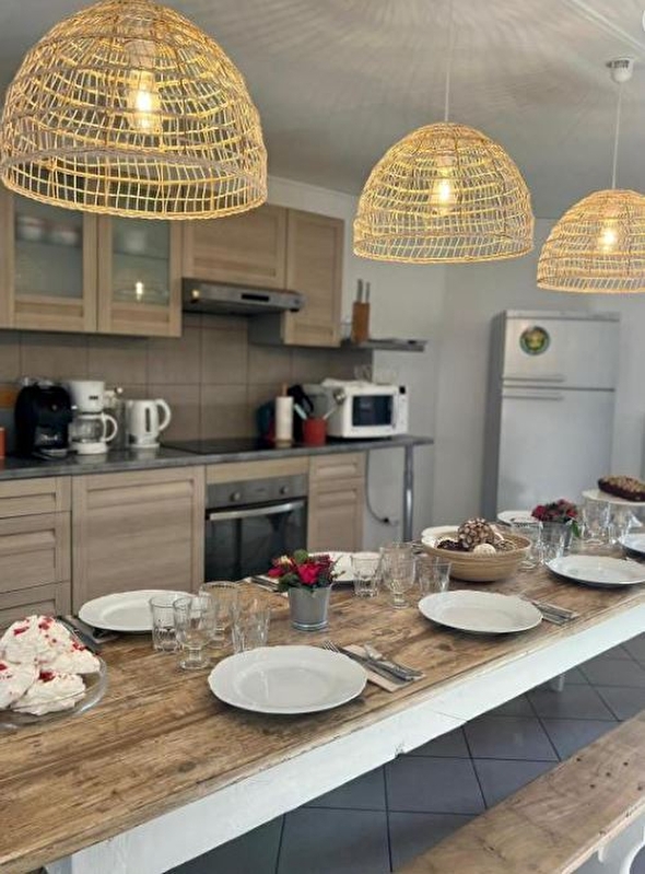 Mit seinen 5 Zimmern, die die Namen der Jahreszeiten tragen, plus seinem Zen-Zimmer, kann das Ferienhaus bis zu 12 Personen beherbergen. Diese schöne, kürzlich renovierte Scheune bietet ein Dekor im Stil eines Familienhauses, in dem die Palette von Weiß und Holz den Zimmern eine kuschelige und gemütliche Atmosphäre verleiht.
