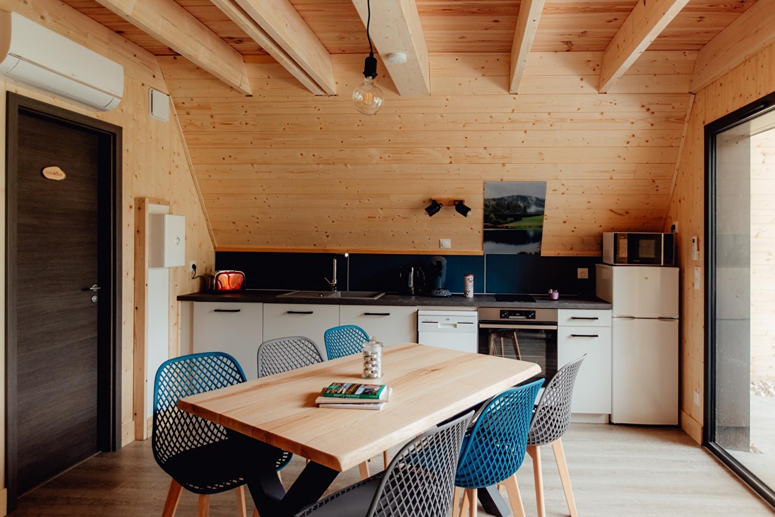 Die Chalets de Coyron, die sich im Herzen eines charmanten Dorfes in unmittelbarer Nähe des Vouglans-Sees befinden, sind der ideale Zufluchtsort für einen Ausflug in den Jura, der Ruhe, Erholung und Entspannung inmitten der unberührten Natur vereint. Ihr originelles Design in Form eines A, das gleichzeitig modern und gemütlich ist, wird Sie auf den ersten Blick begeistern.