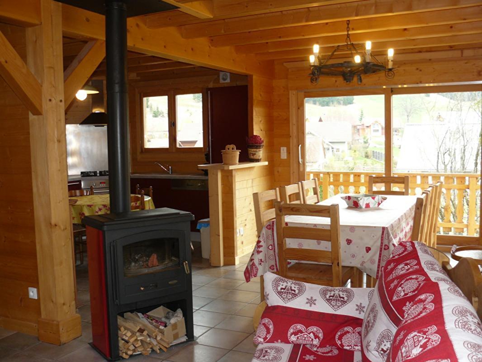 - ein Wohn- und Esszimmer mit Holzofen (Holz wird gestellt),