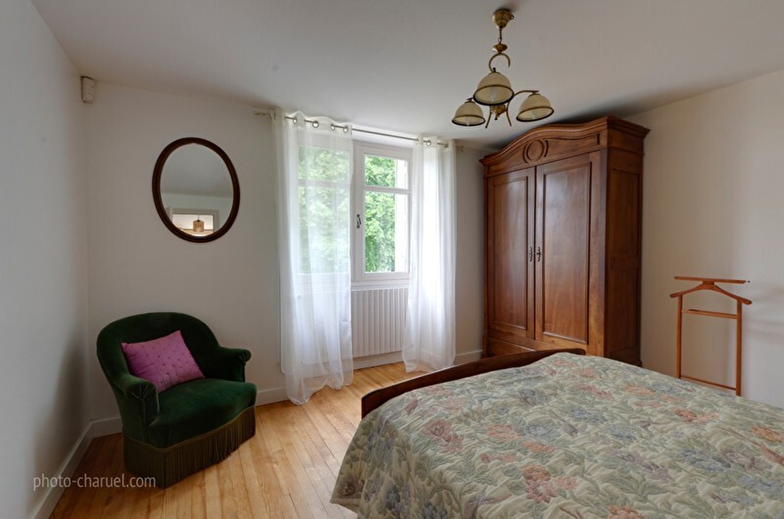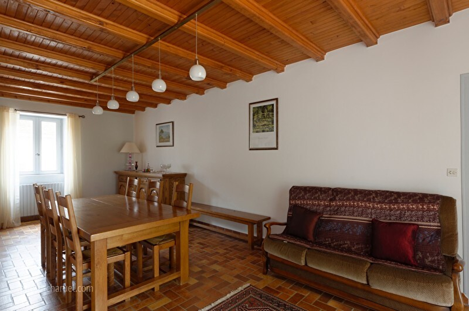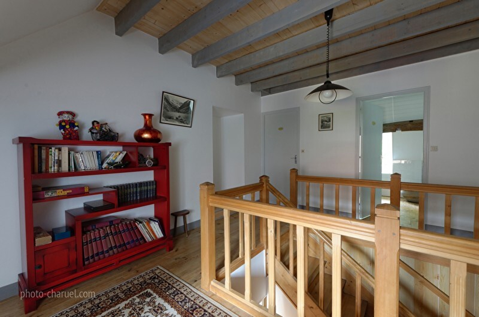 Eingangshalle, ausgestattete Küche, Esszimmer, Wohnzimmer mit TV, Zimmer 1: 1 Bett 160x200 cm, Badezimmer, separates WC. Obergeschoss: Mezzanin, Leseecke, 4 Schlafzimmer mit je 1 Doppelbett und 1 Schlafzimmer mit 3 Einzelbetten, Badezimmer, separates WC. Terrasse mit Gartenmöbeln und Grill. Angrenzendes, nicht eingezäuntes Grundstück von 30 Hektar. WLAN. Babyausstattung auf Anfrage.