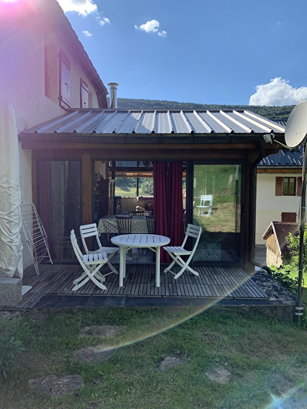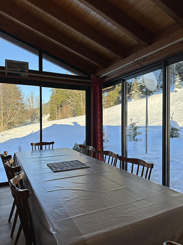 Bergvermietung bestehend aus 8 Zimmern in Duplex für maximalen Komfort und Raum (150m2). Wohnung im 1. und 2. Stock mit freiem Blick auf die Berge. Die Wohnung ist komplett ausgestattet, geräumig und hell. Vollständig ausgestattete Küche (Geschirrspüler, Mikrowelle, F pièrade, Fondue- und Raclettegeräte ...). Zwei separate Badezimmer mit Toilette (Waschmaschine und Trockner). Das kleine Plus? Sehr hell und die Unterkunft verfügt über eine Veranda / Patio mit Innenofen, aber auch eine sonnige Terrasse am Morgen. Für kühle Winternächte oder um in der Sonne zu frühstücken, alles ist da.