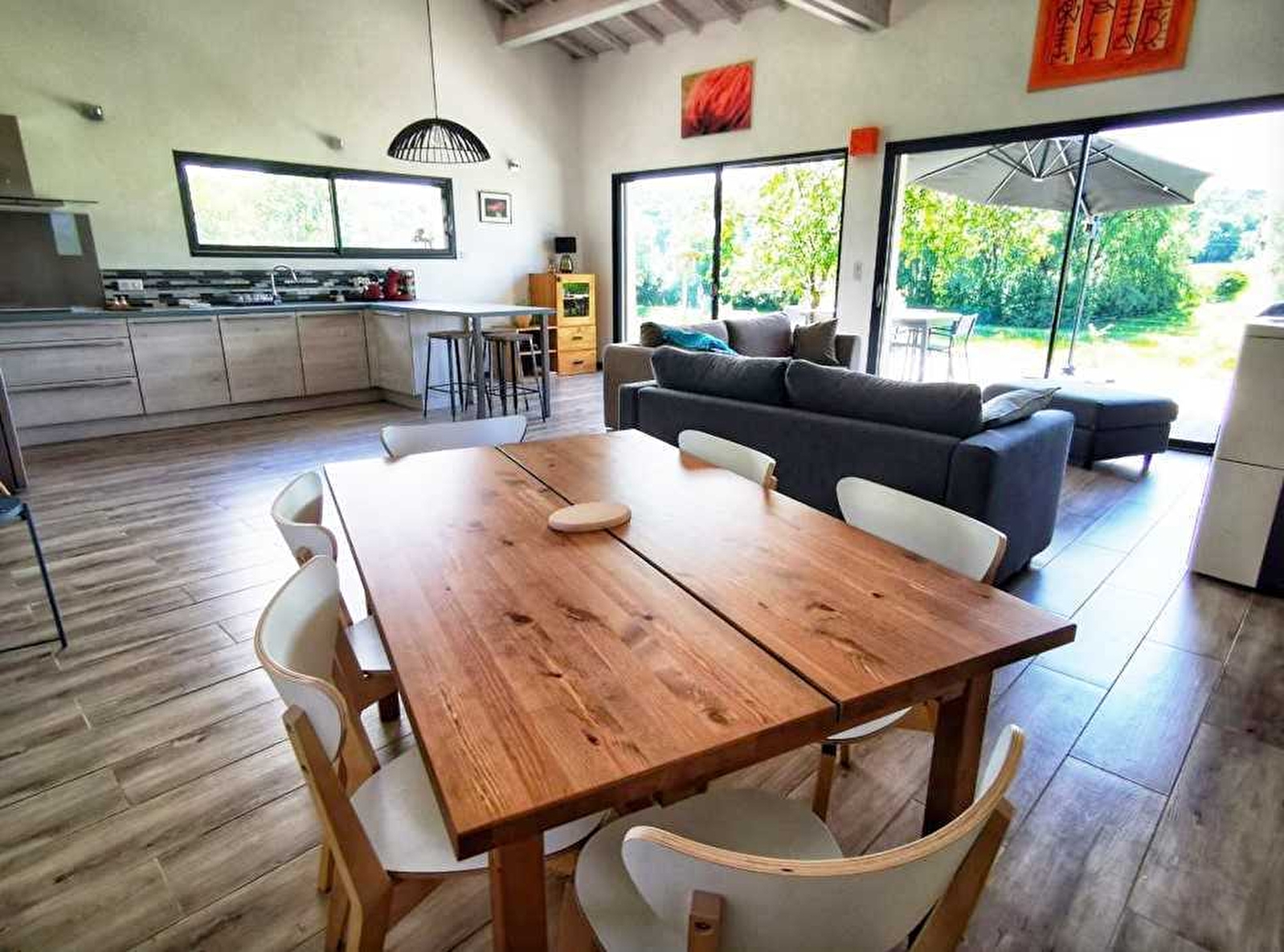Ideal gelegen im Herzen des Seengebiets, nur 300 m zu Fuß vom See von Chalain entfernt, entdecken Sie dieses hübsche, ebenerdige, unabhängige Haus in einer ruhigen Sackgasse im Dorf Doucier. Schöner Wohnraum, bestehend aus einer voll ausgestatteten Küche und einem Wohnzimmer mit Schlafsofa, Flachbildfernseher und Pelletofen. Zwei Schlafzimmer, eines mit einem Doppelbett von 140x190 cm und das zweite mit einem Doppelbett von 160*200 cm. Badezimmer mit begehbarer Dusche, separates WC. Große Terrasse, um die Ruhe und die umliegende Natur optimal zu nutzen, in der warmen Jahreszeit mit Gartenmöbeln und Grill ausgestattet, Hof und angrenzendes, nicht eingezäuntes Grundstück. Überdachung für das Auto. Ungesicherter Teich (flach) in der Nähe, auf dem Grundstück der Eigentümerin. Warten Sie nicht länger, um Ihren Aufenthalt zu buchen! Reinigung im Preis inbegriffen