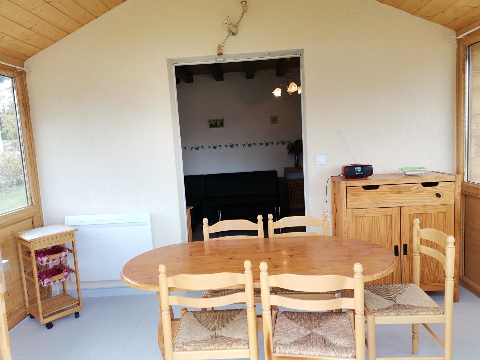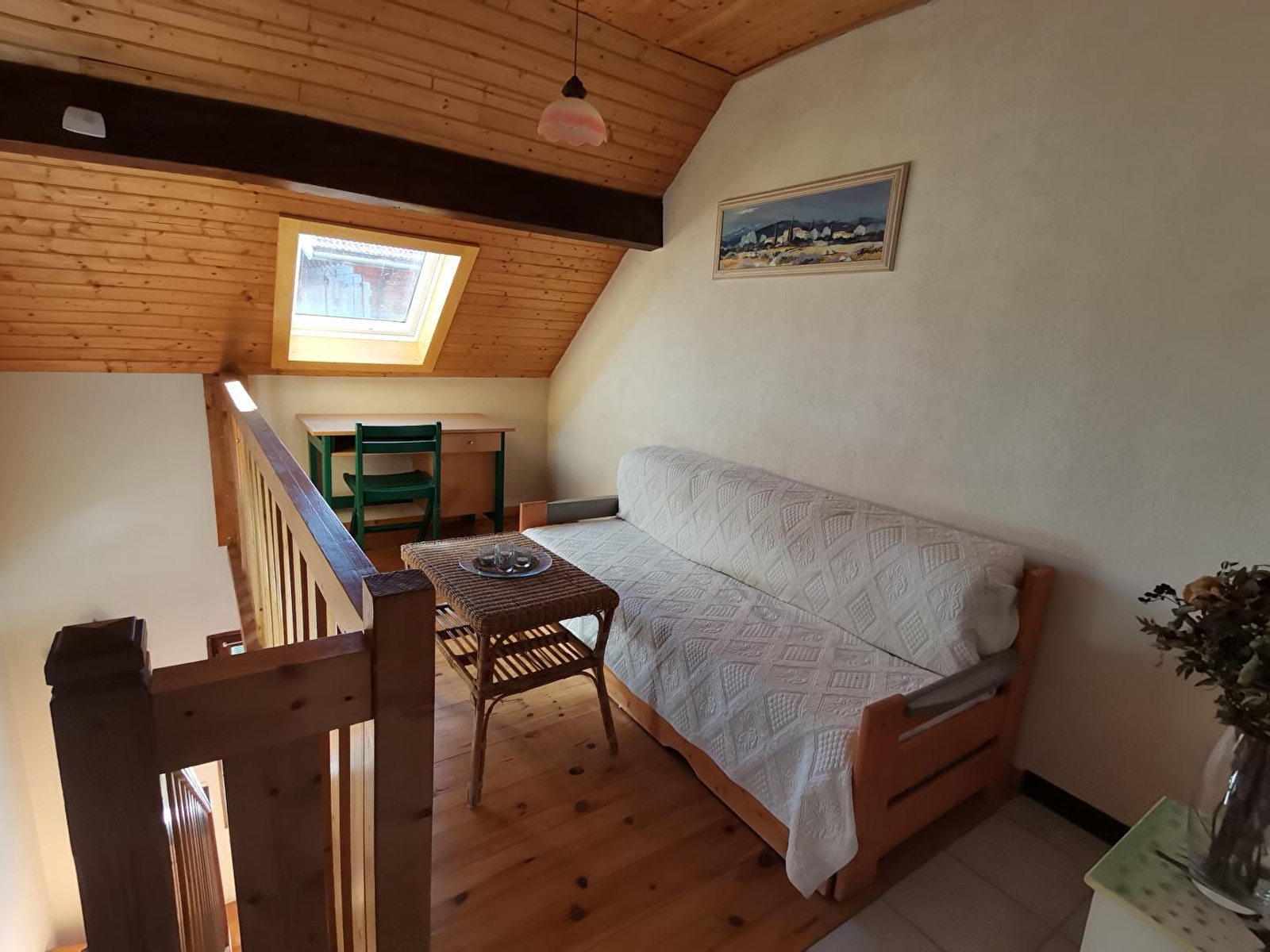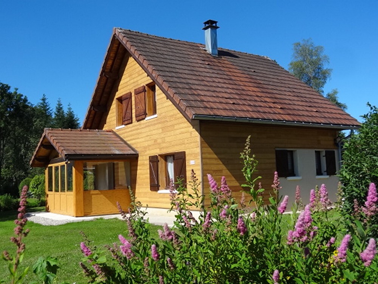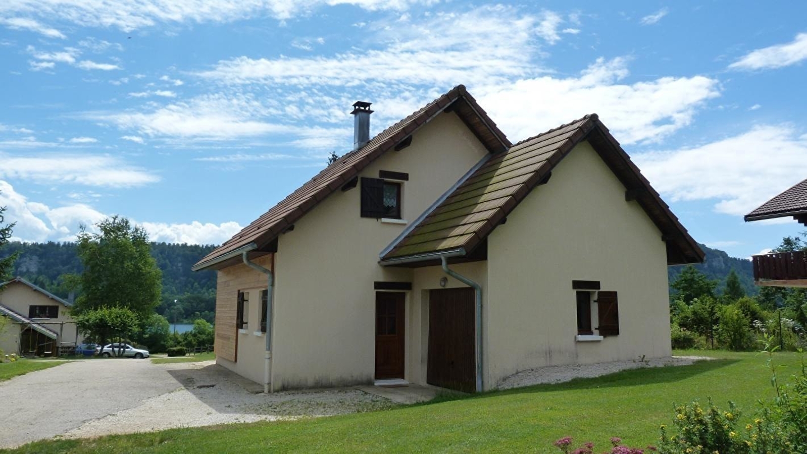 Freistehendes Haus im Herzen der Region der Seen und Wasserfälle, am Fuße und mit Blick auf den See von Ilay. Innenbereich aus Holz mit geschlossener Veranda mit Küchenzeile, Gartenmöbeln, Grill. Garage zur Aufbewahrung von Fahrrädern und diversem Material (Skier...), Privatparkplatz. Großer angrenzender Garten mit Spielplatz. Erdgeschoss: zum Wohnraum hin offene Einbauküche, Herd mit Sichtfenster, Zimmer 1: 1 Doppelbett, Bad, separates WC. Obergeschoss: Mezzanin mit Sitzecke, Schlafsofa für 1 Person, Zimmer 2: 1 Doppelbett, Zimmer 3: 1 Einzelbett, separates WC, optionales Badezimmer mit einem Aufpreis von 30 €/Woche. Holz- und Elektroheizung (Holzpauschale zwischen 25 und 45€ je nach Saison). Nur ein Haustier erlaubt mit einer Kaution von 200 €.