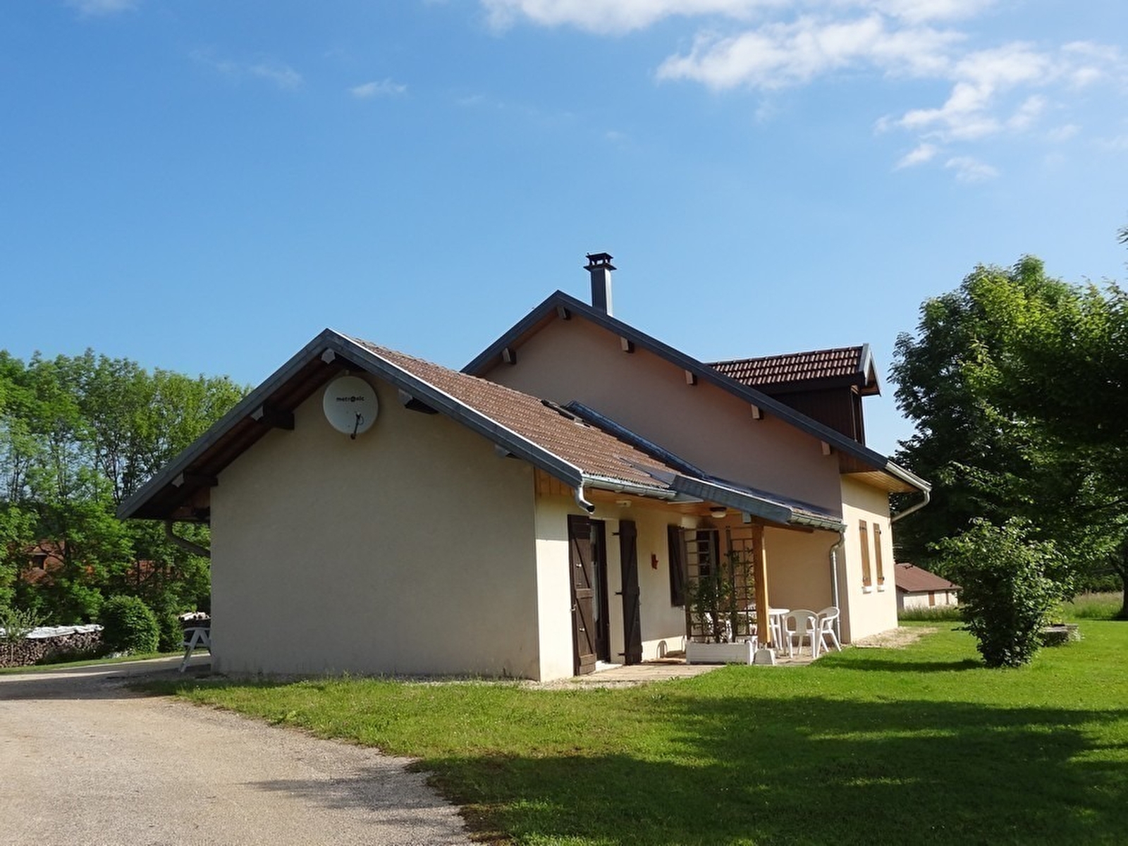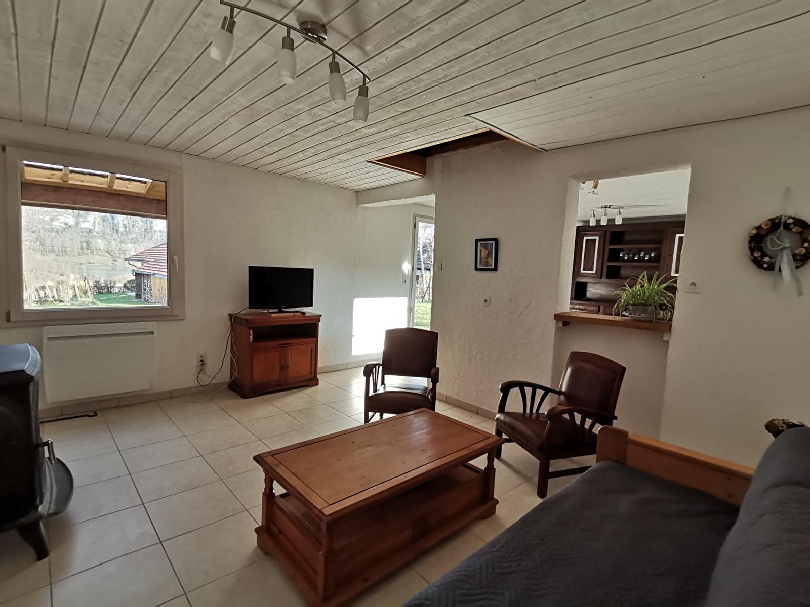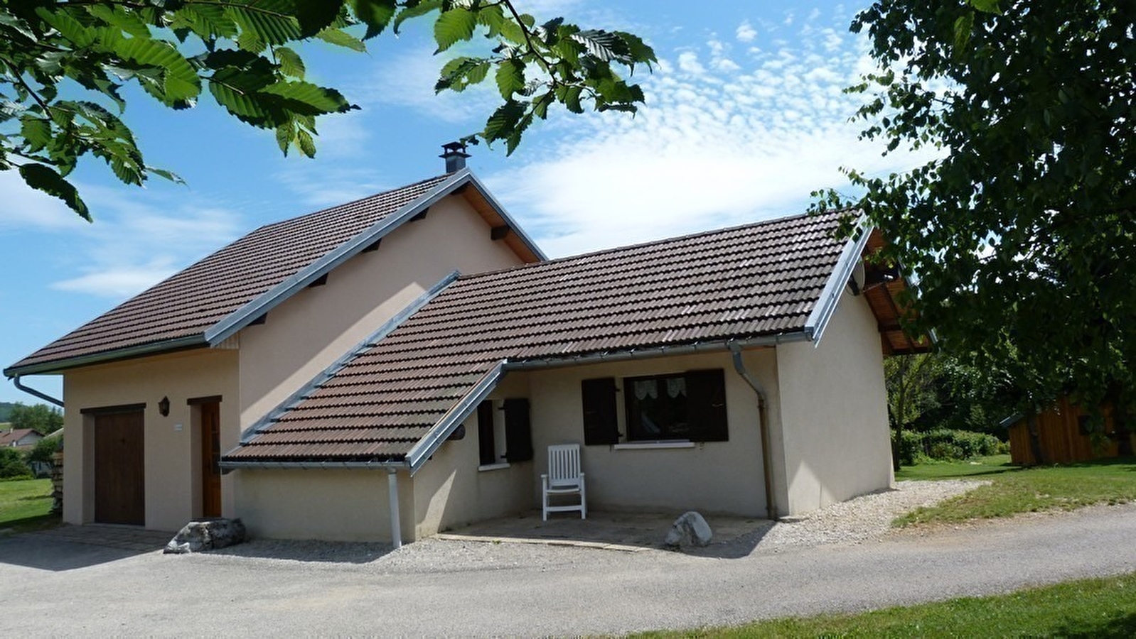 Unabhängiges Haus im Herzen der Region der Seen und Wasserfälle, am Fuße und mit Blick auf den See von Ilay. Gite de France 3 Ähren. Das ganze Jahr über geöffnet, wöchentliche Vermietung. Holzhaus mit überdachter Terrasse für Gartenmöbel, Grill. Garage zur Aufbewahrung von Fahrrädern und diversem Material (Skier...), mit Privatparkplatz. Großer angrenzender Garten mit Spielplatz. Im Erdgeschoss: Einbauküche, offen zum Wohnraum mit Sichtglasofen, geschlossene Veranda mit Essbereich. Schlafzimmer 1: 1 Doppelbett, Schlafzimmer 2: 1 Doppelbett, Badezimmer, separates WC. Obergeschoss: Sitzecke, Büro, Zimmer 3: 2 Einzelbetten, Badezimmer optional mit einem Aufpreis von 30 €/Woche. Holz- und Elektroheizung (Holzpauschale zwischen 25 und 45 € je nach Saison). Nur ein Haustier erlaubt, Kaution 200 €.