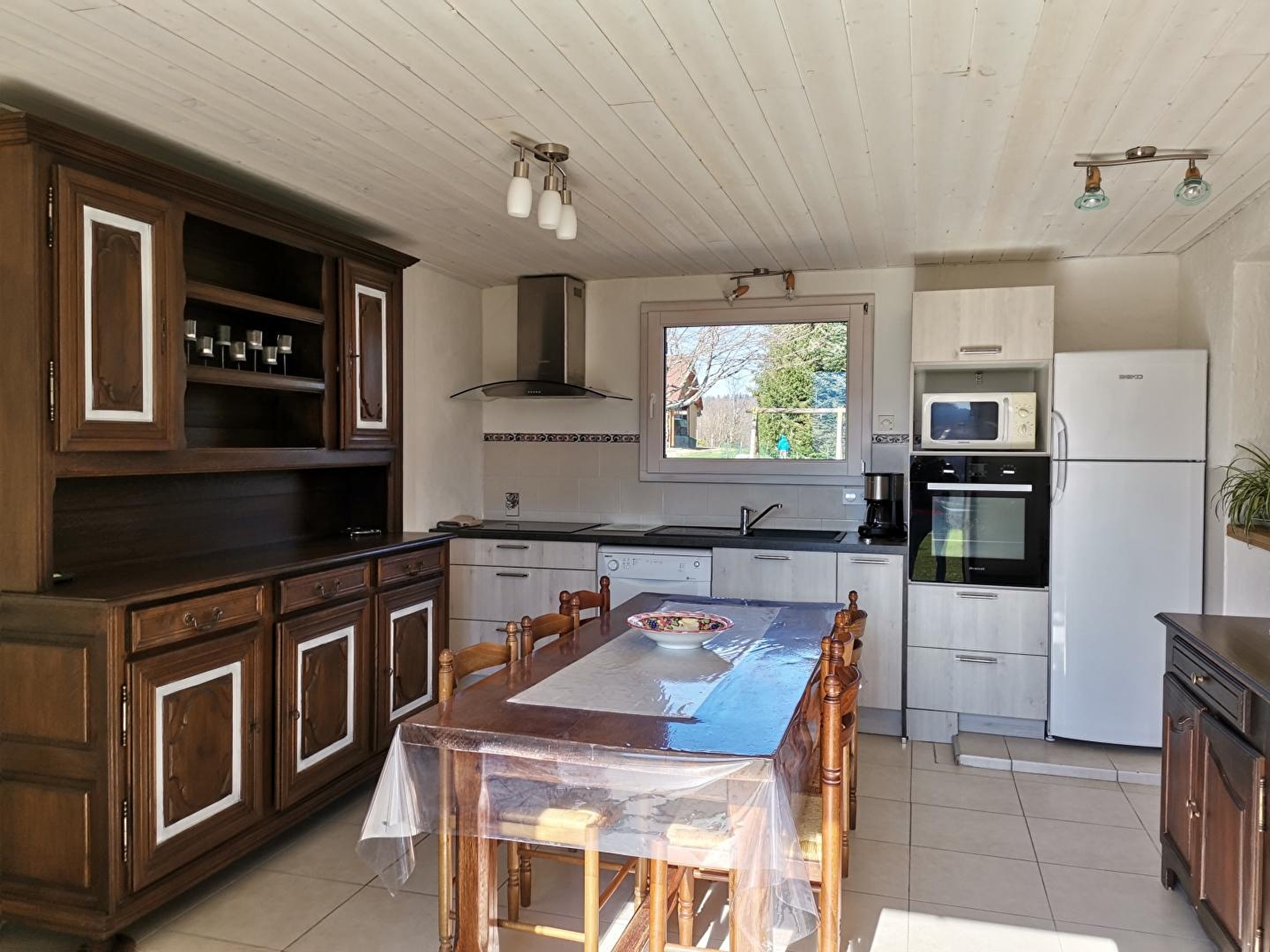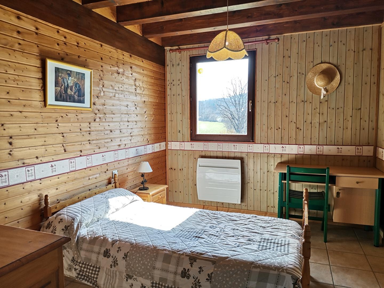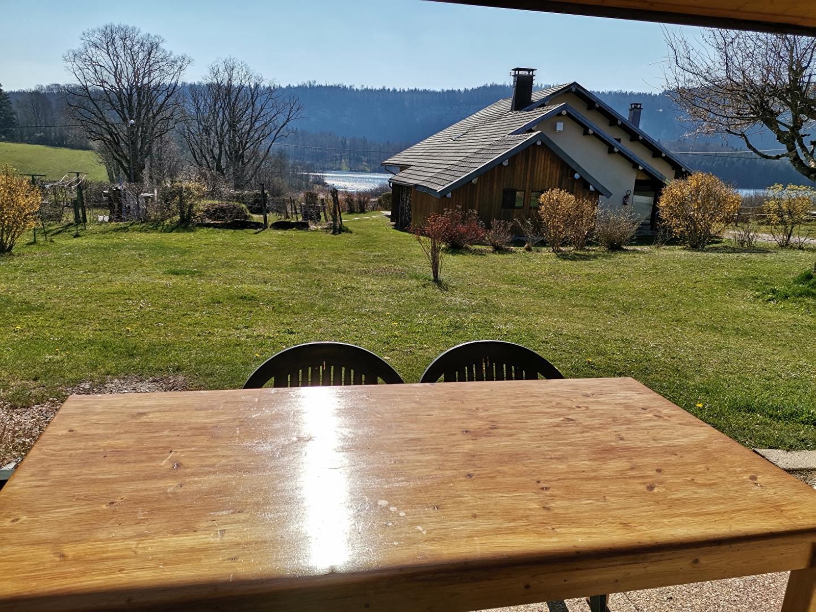 Unabhängiges Haus im Herzen der Region der Seen und Wasserfälle, am Fuße und mit Blick auf den See von Ilay. Gite de France 3 Ähren. Das ganze Jahr über geöffnet, wöchentliche Vermietung. Holzhaus mit überdachter Terrasse für Gartenmöbel, Grill. Garage zur Aufbewahrung von Fahrrädern und diversem Material (Skier...), mit Privatparkplatz. Großer angrenzender Garten mit Spielplatz. Im Erdgeschoss: Einbauküche, offen zum Wohnraum mit Sichtglasofen, geschlossene Veranda mit Essbereich. Schlafzimmer 1: 1 Doppelbett, Schlafzimmer 2: 1 Doppelbett, Badezimmer, separates WC. Obergeschoss: Sitzecke, Büro, Zimmer 3: 2 Einzelbetten, Badezimmer optional mit einem Aufpreis von 30 €/Woche. Holz- und Elektroheizung (Holzpauschale zwischen 25 und 45 € je nach Saison). Nur ein Haustier erlaubt, Kaution 200 €.