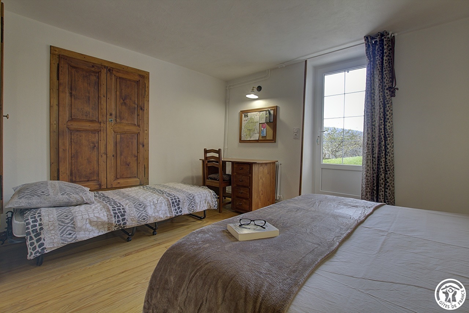 Sie betreten das Haus über den gesicherten Innenhof und gelangen dann in das Wohnzimmer mit seiner voll ausgestatteten Küche, die sich zu einem Salon öffnet, in dem man vor dem Kamin sitzen kann. Das Schlafzimmer mit Parkettboden, ausgestattet mit einem Schreibtisch aus Teakholz, umfasst ein Bett 160*200 plus ein Klappbett mit regelmäßiger Liegefläche 90*190, bietet direkten Zugang zur Terrasse aus Steinplatten mit freiem Blick auf den Obstgarten; ein Badezimmer und sein WC. Ein zweites Ferienhaus für 5 Personen liegt nebeneinander, um das Wiedersehen mit der Familie oder mit Freunden zu erleichtern und den großen Obstgarten, der den Gästen zur Verfügung steht, voll auszunutzen. Das Anwesen überragt ein grünes Tal, durch das sich der Bach Anconnans und der Fluss Oignin schlängeln. Pluspunkte des Ferienhauses Chez le Tourneur: Die Betten sind bei der Ankunft gemacht, die Handtücher werden gestellt und die Nebenkosten sind im Preis inbegriffen.