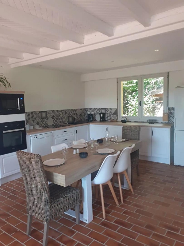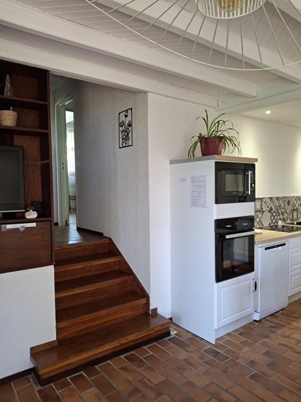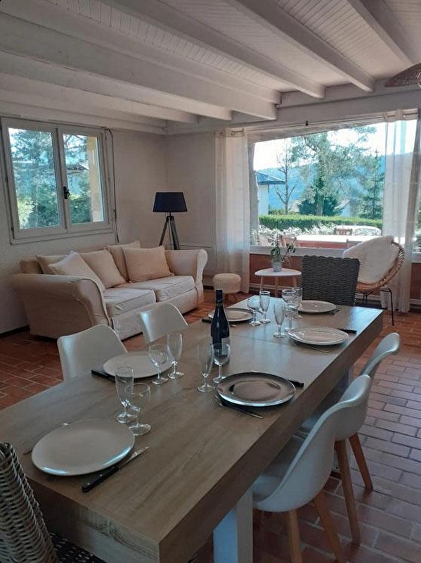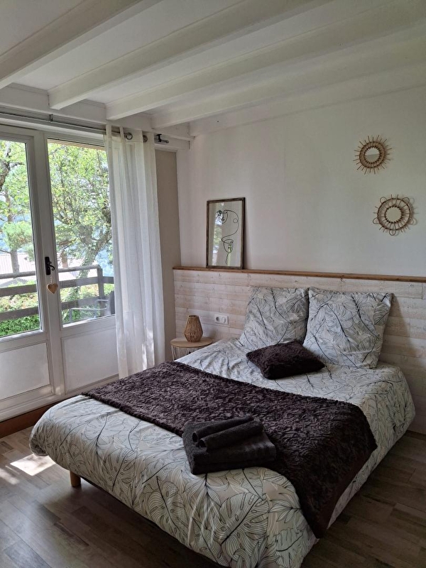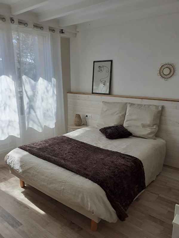 Auf den Höhen von Maisod, in ruhiger Lage und in unmittelbarer Nähe des Sees von Vouglans, besteht dieses Haus aus einem Wohnraum mit komplett ausgestatteter Küche, einer Sitzecke mit Sofa/TV und Holzofen, einer Bibliotheksecke mit Kinderspielen und Büchern, einem Schlafzimmer mit einem Doppelbett (140*190), einem Schlafzimmer mit einem Doppelbett (160*200), einem Badezimmer mit Badewanne und einem separaten WC. Das dritte Zimmer, das nur von außen zugänglich ist und im Untergeschoss eingerichtet wurde (Deckenhöhe = 185 cm), besteht aus einem Doppelbett (140*190), einer Kochnische und einem Badezimmer mit Dusche und WC (ideal für 2 Personen, die mit der Familie oder Freunden verreisen und dabei ihre Unabhängigkeit bewahren möchten). Im Außenbereich können Sie eine überdachte Terrasse mit Gartenmöbeln und einen schattigen Garten mit Bäumen, Liegestühlen und Gartensesseln nutzen. Die Lage ist ideal, die ersten Strände und der kleine Jachthafen mit Bootsanleger sind in 5 Minuten mit dem Auto erreichbar, mehrere Rad- und Wanderwege führen von der Unterkunft aus bis zum See. Sie können auch die Geheimnisse der Herstellung des berühmten Comté-Käses in der Fruitière de Thoiria (10 min mit dem Auto) probieren und entdecken und die Wasserfälle von Hériosson in etwa 30 Minuten bewundern.