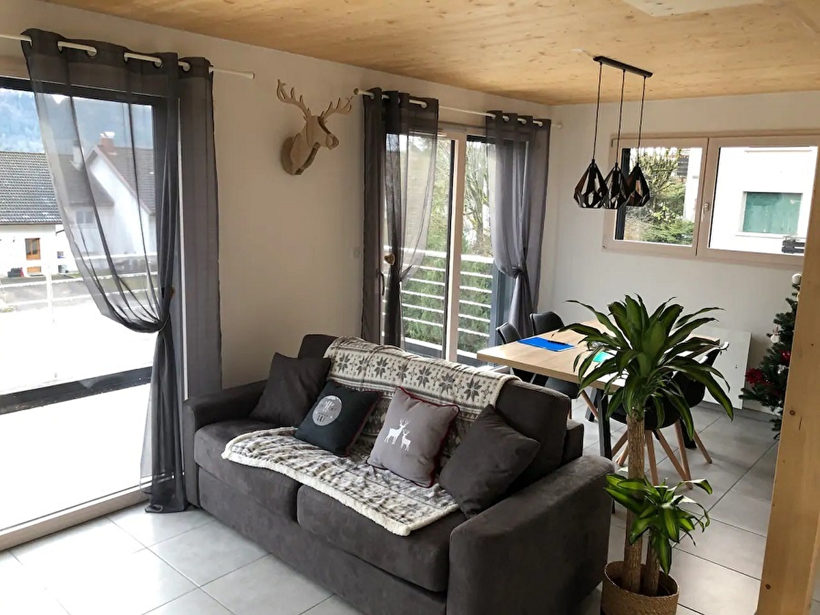 Dieses Haus in Holzrahmenbauweise befindet sich in idealer Lage auf den Höhen von Morbier und besteht im ersten Stock aus einem Wohnraum mit ausgestatteter Küche, die sich zum Esszimmer und Wohnzimmer (mit Schlafsofa für 2 Personen) öffnet, und einem WC. Im zweiten Stock befinden sich zwei Schlafzimmer, das erste mit einem Doppelbett (160x200) und das zweite mit zwei Einzelbetten (90), die alle sehr komfortabel sind, sodass Sie nach einem Tag auf der Piste wieder in Form kommen können. Jedes Zimmer verfügt über große Fenster mit direktem Blick auf das Dorf Morbier, das Bielatal und das Massif de la Dôle, alles in einem Bergdekor, das Holz und Modernität vereint, Badezimmer mit Dusche und WC. Außen befindet sich eine Terrasse( vom Esszimmer aus zugänglich) mit einem atemberaubenden Blick auf das Bergmassiv, die mit Gartenmöbeln, Liegestühlen und einem Grill ausgestattet ist. Die Langlauf- und Abfahrtspisten sind nur 2 km entfernt: Die Station Les Marais in Morbier ist ideal zum Lernen oder für Skianfänger, für die erfahreneren Skifahrer bietet die Station Les Rousses ein großes Skigebiet sowohl für Langlauf- als auch für Abfahrtsski. Sie können auch das Brillenmuseum in Morez und das Zentrum Paul Emile Victor (Museum und Eislaufbahn) in Prémanon entdecken und einen Tagesausflug in die Schweiz unternehmen. Die Eigentümer Jean-Charles und Aurélie stehen Ihnen gerne mit Rat und Tat zur Seite, wenn Sie Fragen zu Sehenswürdigkeiten, Skigebieten usw. haben. Weitere Informationen: Schleuse im Erdgeschoss, um Ihre Skier, Schneeschuhe, Fahrräder zu lagern ... der Zugang zur Unterkunft erfolgt dann über eine Treppe von etwa 15 Stufen: Sie kommen in einen Raum mit Waschmaschine und Trockner, können Sie auch Ihre Sachen (Kleidung, Einkäufe, Koffer ...) zu lagern.