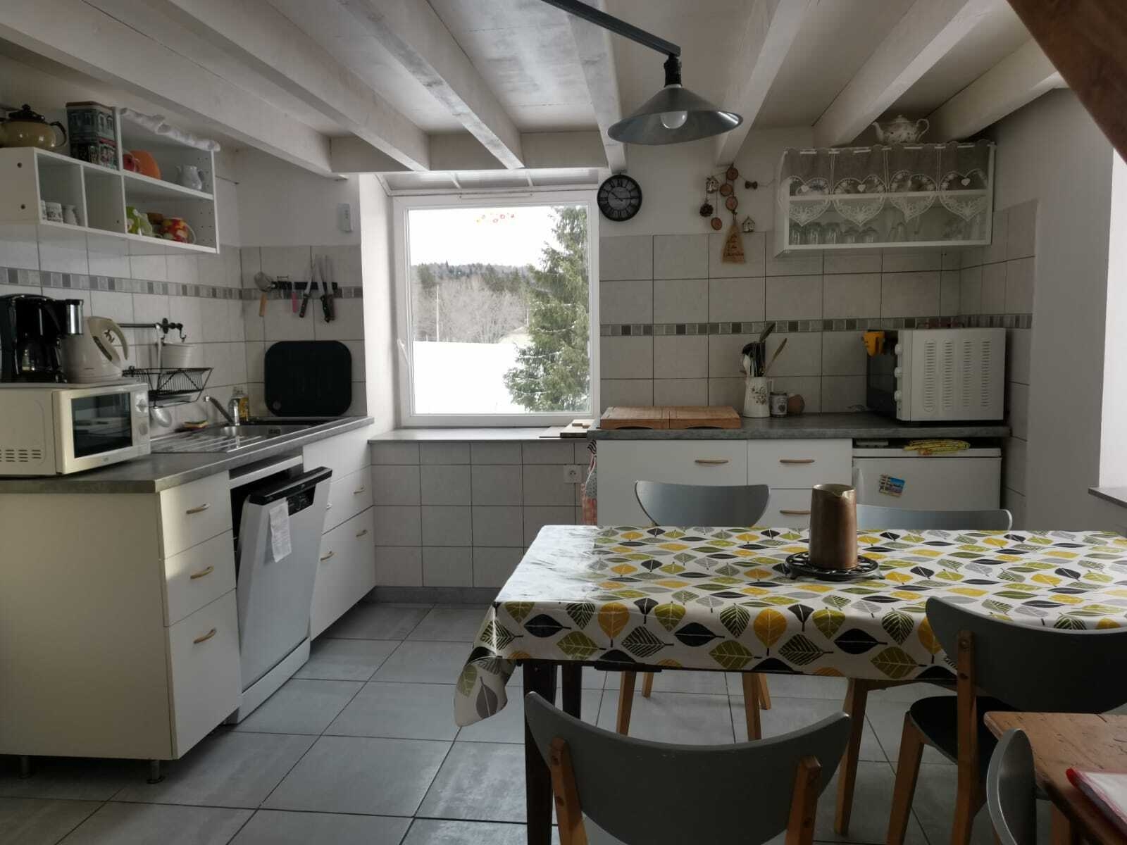 Diese Unterkunft befindet sich in einer alten, restaurierten Schule und liegt mitten in der Natur im Weiler Charrières in der Gemeinde Longchaumois. Sie befindet sich im Erdgeschoss des Wohnhauses der Eigentümer und besteht aus einem Küchen- und Wohnbereich, einem Badezimmer-WC und einem geschlossenen Zwischengeschoss. Sie verfügen außerdem über einen Abstellraum und eine Veranda mit separatem Eingang. Heizung mit Holzofen, den Sie selbst befeuern müssen.