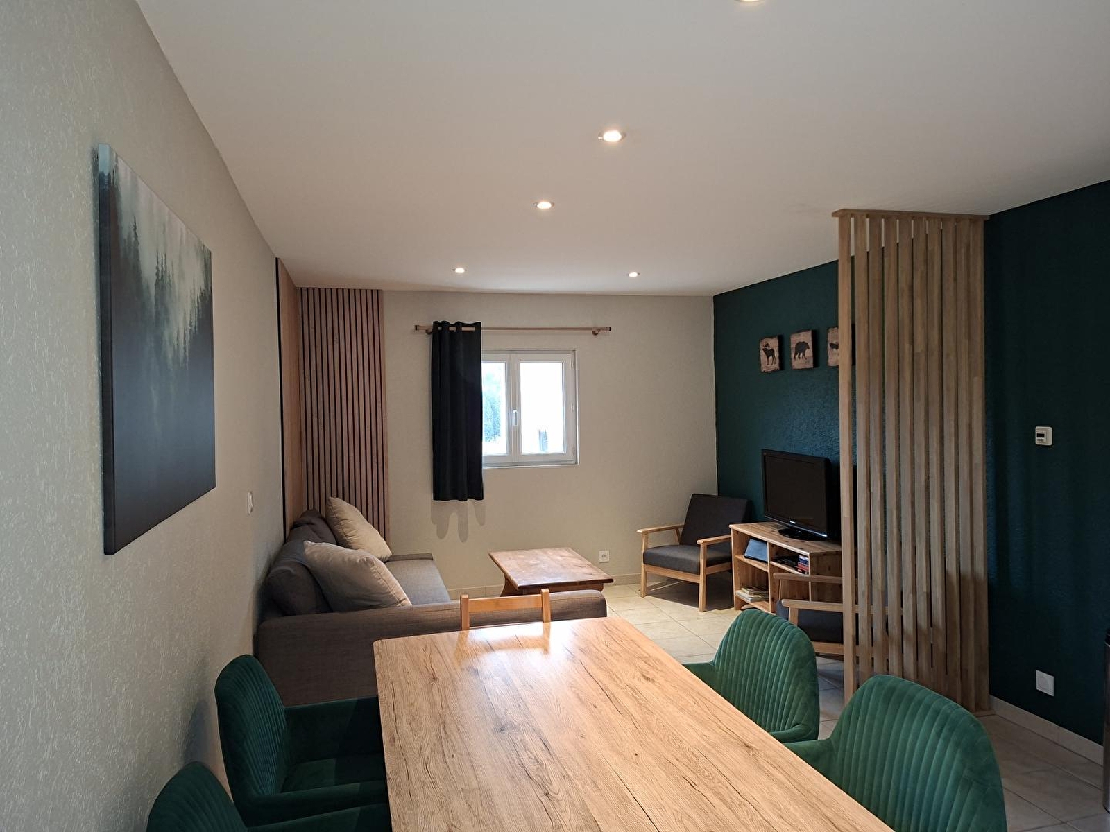 Dieses Ferienhaus liegt mitten in der Natur und besteht im Erdgeschoss (über einige Stufen erreichbar) aus 2 Badezimmern mit jeweils einer Duschkabine und einem WC, einem dritten WC (separat), einem Wohnraum mit direktem Zugang zur Terrasse mit voll ausgestatteter Küche, Sitzecke mit TV und im Obergeschoss aus einem Schlafzimmer mit 4 Schlafplätzen in einem Etagenbett und einem zweiten Schlafzimmer mit einem Doppelbett (160*200): Gartenmöbel und Grill zu Ihrer Verfügung, angrenzendes, nicht eingezäuntes Grundstück. Das Ferienhaus ist ideal gelegen für Wanderungen, Langlauf, Schneeschuhwanderungen und Abfahrtsski (Station La Serra in Lamoura), Sie können auch die wunderschönen Landschaften der Hautes-Combes (La Pesse, Lajoux...) entdecken oder in 45 Minuten in die Schweiz fahren (Genfer See in Nyon).