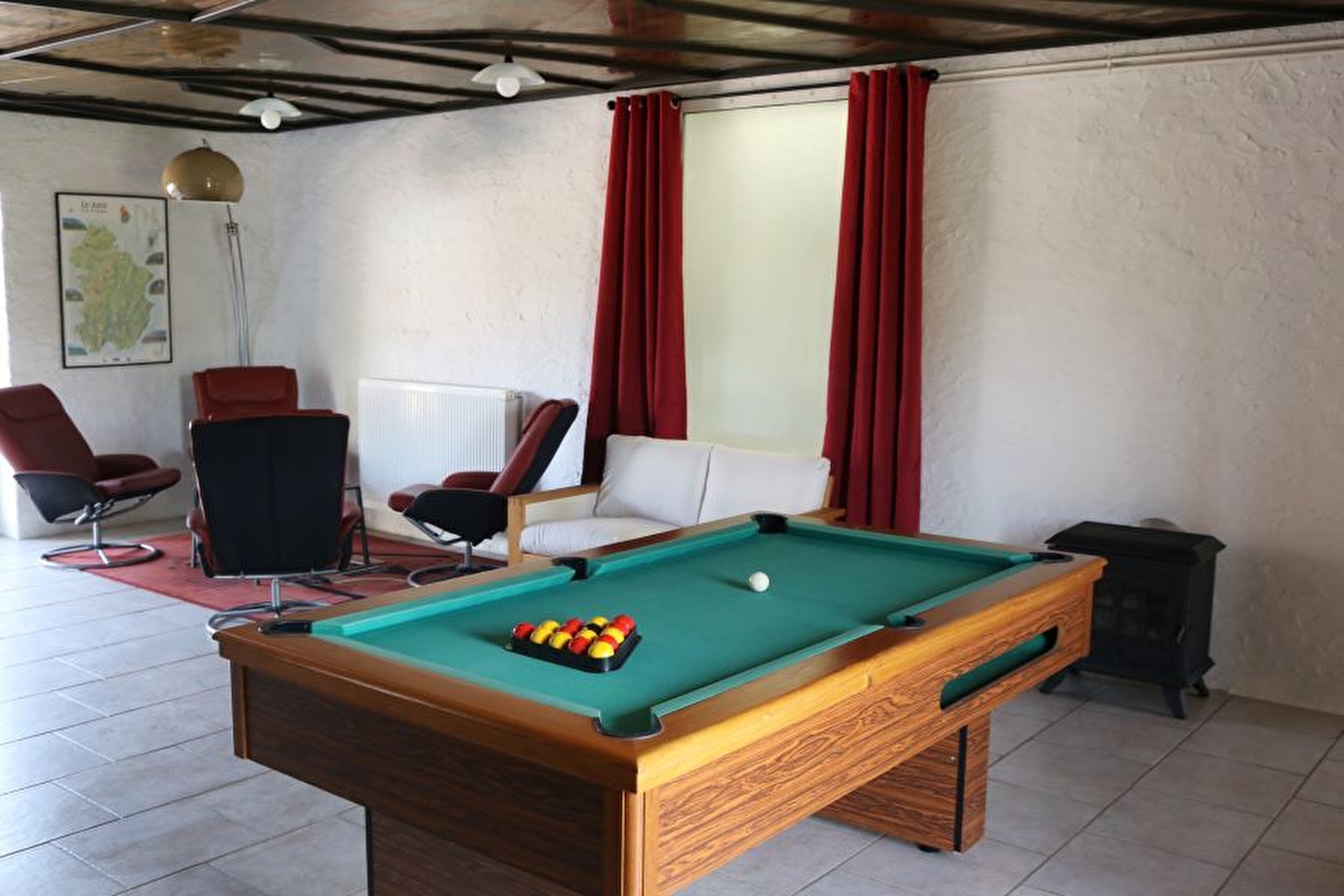 Wenn Sie sich nach Ruhe und weiten Räumen sehnen, ist dieses Ferienhaus genau das Richtige für Sie! Es besteht aus einem großen Raum mit einer voll ausgestatteten Küche, einer Spielecke mit Billardtisch und Holzofen, einem Wohnzimmer mit Kamin für gesellige Momente bei einer kleinen Flamme, einem Esszimmer, einer Waschküche mit Waschmaschine und Trockner, einem Badezimmer mit Dusche und WC sowie einem zweiten separaten WC. Obergeschoss: Mezzanin mit TV, Fitnessgeräten (Rudergerät, Fahrrad, Stepper), 1 Schlafzimmer mit Bett 140 und eigenem Badezimmer (Dusche und WC), ein zweites Schlafzimmer mit Bett 140 und eigenem Badezimmer (Badewanne und WC), ein drittes Schlafzimmer mit 2 Einzelbetten und eine Schlafecke mit 2 Etagenbetten und 2 Einzelbetten. Außenbereich: Gartenmöbel, Grill/Plancha und Liegestühle sorgen dafür, dass Sie die Ruhe der Umgebung genießen können. 5 Fahrräder und ein Bouleplatz stehen Ihnen ebenfalls zur Verfügung. Als Sahnehäubchen gibt es einen kostenlosen und unbegrenzten Zugang mit Leihgeräten, um den SwinGolf-Platz (direkt neben der Unterkunft) zu entdecken. Ideal gelegen, um zahlreiche Sehenswürdigkeiten zu erkunden: die malerischen Dörfer Baume les Messieurs und Château-Chalon, die Kunst- und Geschichtsstadt Dole, Beaune und seine berühmten Hospize, das Schloss Pierre de Bresse, die Wassersport- und Spielbasis von Desnes, wo Sie sich im Sommer abkühlen können... Es besteht die Möglichkeit, 1 oder 2 zusätzliche Personen auf Anfrage bei den Eigentümern unterzubringen.