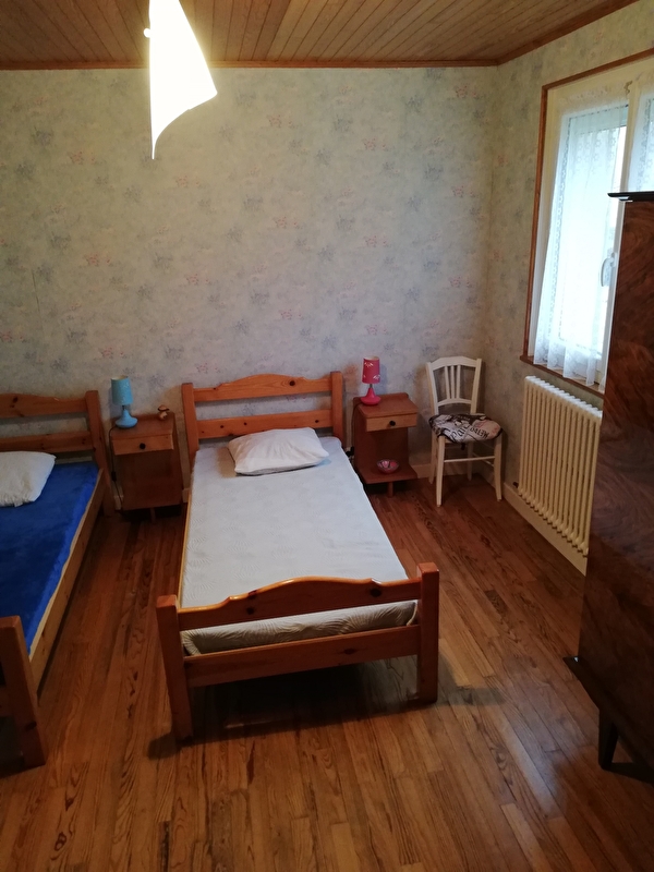 Im Obergeschoss befinden sich die beiden Schlafzimmer, eines mit einem Doppelbett und das andere mit zwei Einzelbetten und einem Zusatzbett, sowie ein WC.
