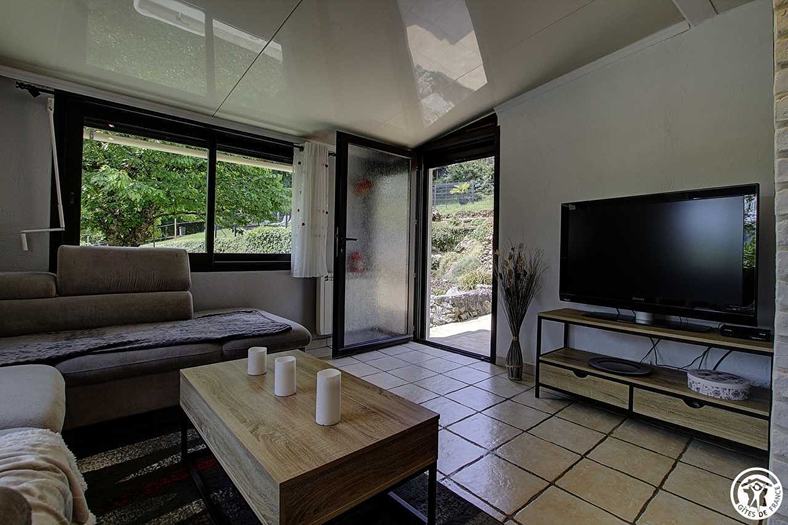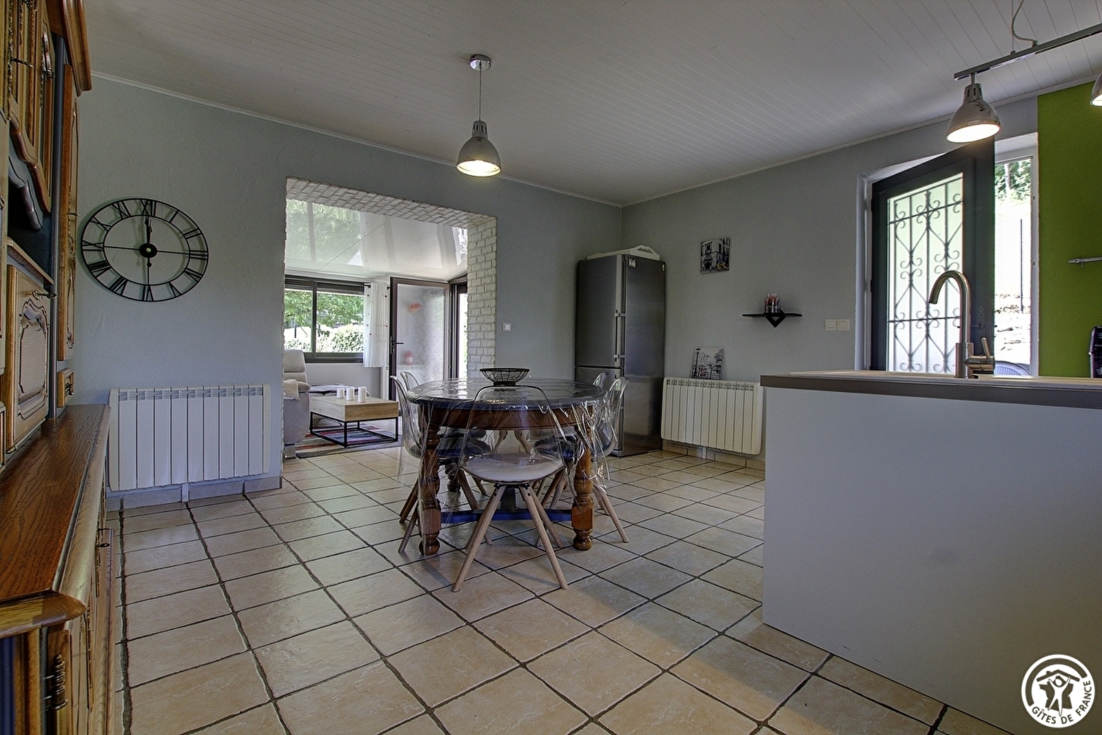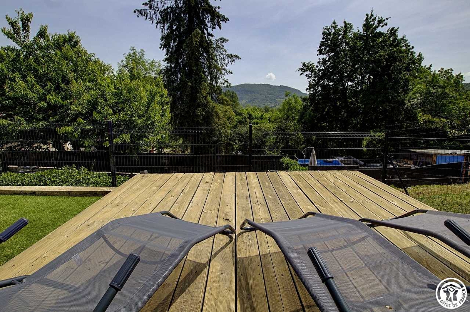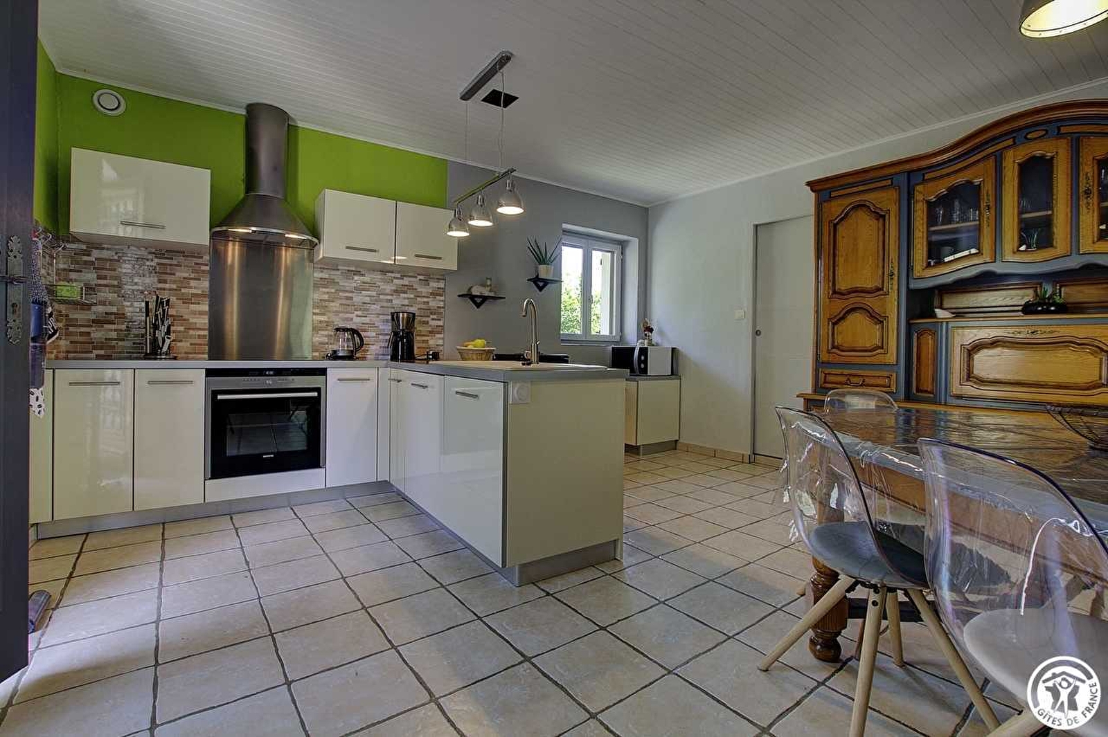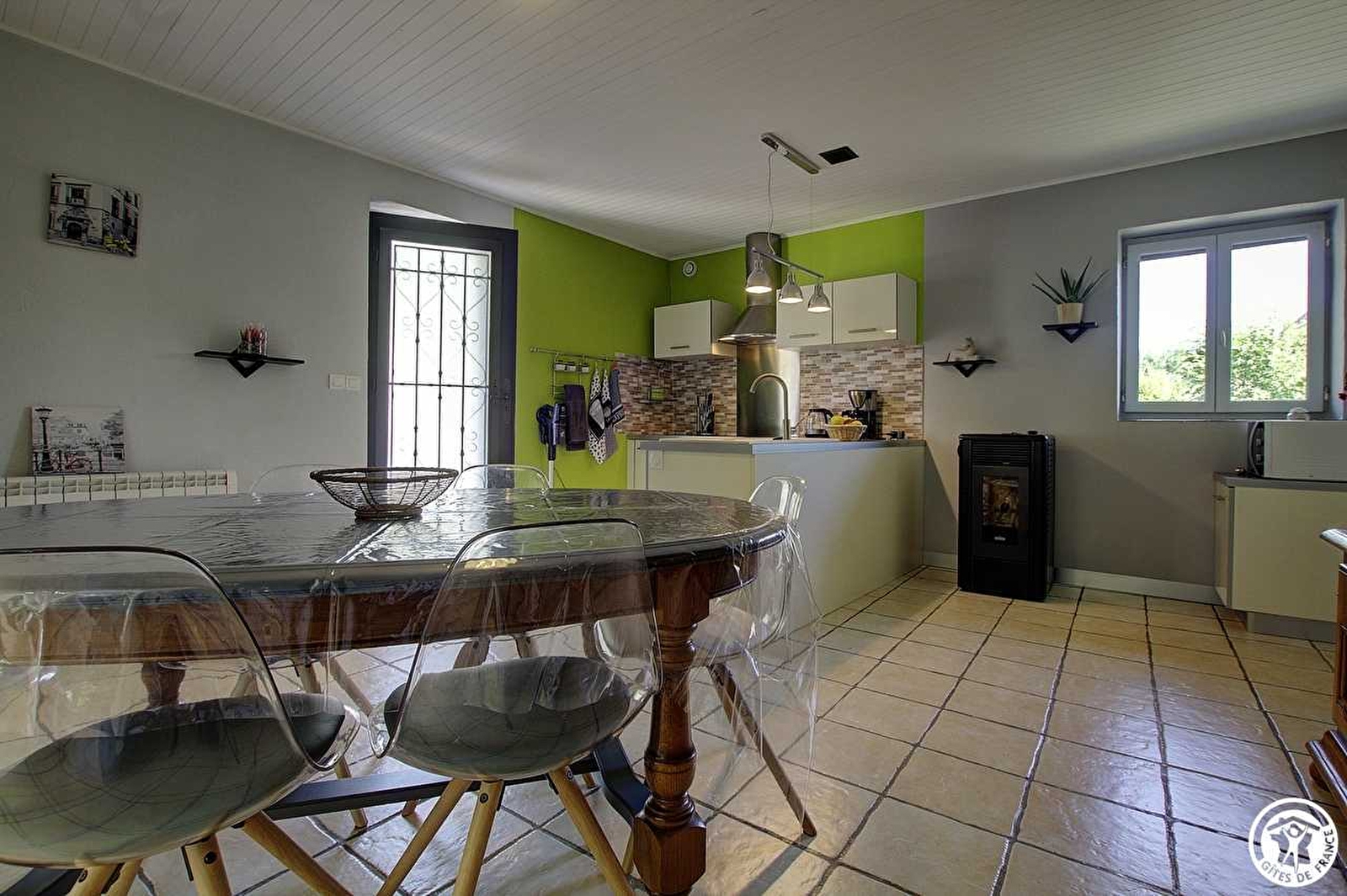 In der Nähe des Rhône-Ufers bietet das Gîte du Machaon (77 m²) mit seinen 2 Schlafzimmern und seinem Schlafbereich Platz für bis zu 6 Gäste. Der eher ungewöhnliche Eingang zur Gîte erfolgt über einen Privatparkplatz mit Garage und Carport. Während Sie an der Werkstatt der Eigentümer entlanggehen, führt Sie dieser gemeinsame Durchgang mit den Nachbarn zu einer privaten Pforte der Unterkunft, um das Grundstück zu entdecken. Wenn Sie den Garten durchqueren, finden Sie auf der linken Seite den Poolbereich (5,2 m * 3,95 m und 1,32 m hoch), der nur in der warmen Jahreszeit zugänglich ist, und seine Terrasse (gesicherter Bereich) sowie einen Boule-Platz und auf der rechten Seite einen Entspannungsbereich, wo Sie den Schatten des Kirschbaums genießen können. Sie betreten das Haus über die Hauptterrasse, die sich zu einer voll ausgestatteten Küche (Pelletofen) und einem offenen Wohnzimmer hin öffnet. In der Verlängerung befindet sich ein Entspannungsbereich, der ebenfalls nach außen führt; ein Schlafzimmer mit einem Bett 140*190, ein Badezimmer mit integriertem WC. Über eine schmale Treppe erreichen Sie das Zwischengeschoss mit einem Doppelbett 140*190 und einem Arbeitsbereich. Ein zweites Schlafzimmer mit zwei Einzelbetten und ein separates WC mit Handwaschbecken. Elektrische Heizung und Holzheizung. Das Plus dieses Ferienhauses: der Privatpool am Ferienhaus und sein Bouleplatz; Tiere sind erlaubt (mit Kautionsscheck von 150 €); die Betten sind bei der Ankunft gemacht, die Nebenkosten sind im Preis inbegriffen. Die Unterkunft liegt am Grünen Weg - der Viarhôna -, sodass Sie die Region genießen und den Rhône-Umleitungskanal entdecken können. Möglichkeit zum Wasserski in 2 km Entfernung, Kanu und Kajak in 2,5 km Entfernung und der WALIBI Rhône -Alpes Park in 6kms Entfernung. Neu: GREEN-UP-Steckdose zum Aufladen von Elektrofahrzeugen steht den Gästen zur Verfügung (Pauschale 7,5 € pro Tag oder 50 € pro Woche). Das Auffüllen des Wassers im Pool und die Nutzung durch die Mieter können aufgrund der "Dürre"-Erlasse der Präfektur des Departements Ain eingeschränkt werden.