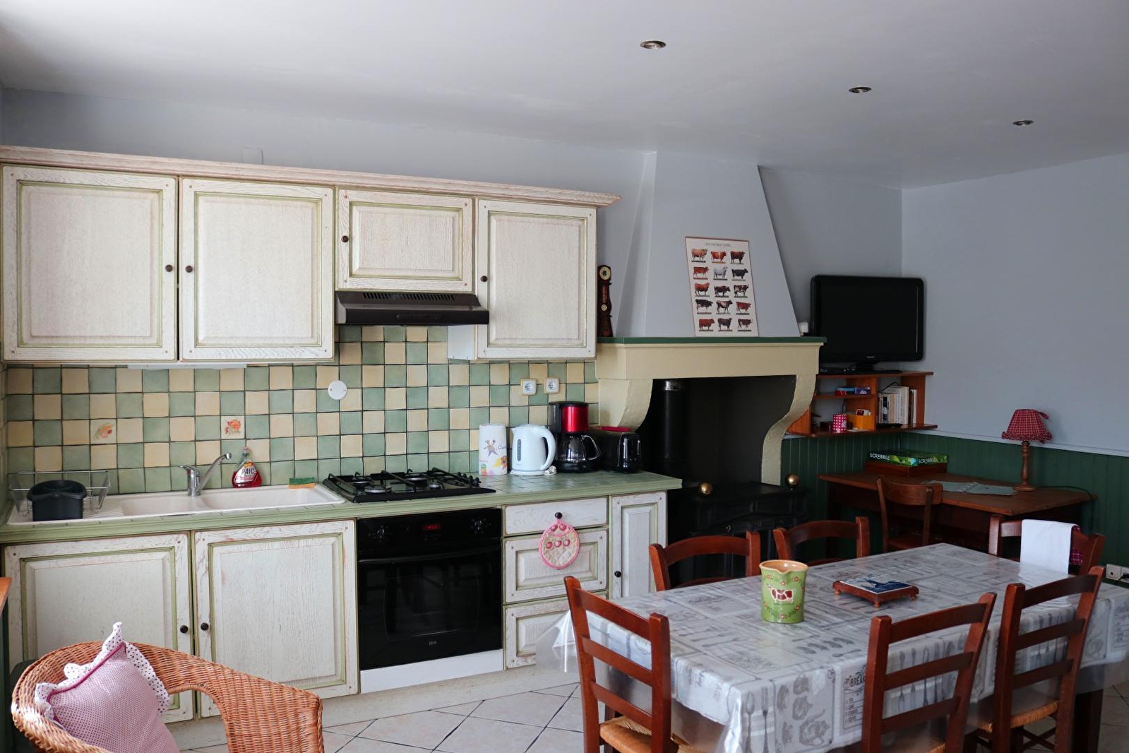 Separater Eingang, Wohnküche, 2 Schlafzimmer (1 Bett 140, 4 Betten 90 oder 2x90 = Bett von 180, Kinderbett - 3 Jahre). Badezimmer mit Dusche. Heizung: Wärmepumpe, Holzofen und elektrischer Konvektor. Unterstand für das Auto. Nicht angrenzendes Grundstück gegenüber der Unterkunft, komplette Gartenmöbel, Grill, Schaukel, Wäscheständer. Datum der Renovierung 2007. Reinigungspauschale möglich (50€). Nur kleine Hunde erlaubt.