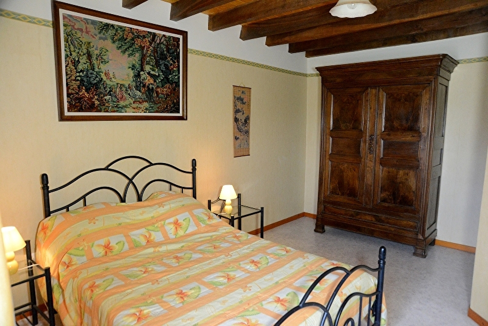 Ebenerdiges Haus, das an ein anderes Haus angebaut ist (die Eigentümer wohnen nicht vor Ort), in ruhiger Lage, 15 Minuten von Lons-Le-Saunier entfernt. Küche-Wohnzimmer-Wohnzimmer mit Kamin, Gefrierschrank, Zimmer 1: 1 Doppelbett, Zimmer 2: 2 Einzelbetten, Zimmer 3: 1 Doppelbett, Badezimmer, separates WC. Telefon. Nicht eingezäunter Gemeinschaftshof, nicht eingezäunter Garten, Carport, Gartenmöbel, Grill. Elektro- und Holzheizung. Nebenkosten nicht inbegriffen, außer Holz, das kostenlos zur Verfügung gestellt wird. Die Bettwäsche wird nicht gestellt. Privatparkplatz vor Ort.
