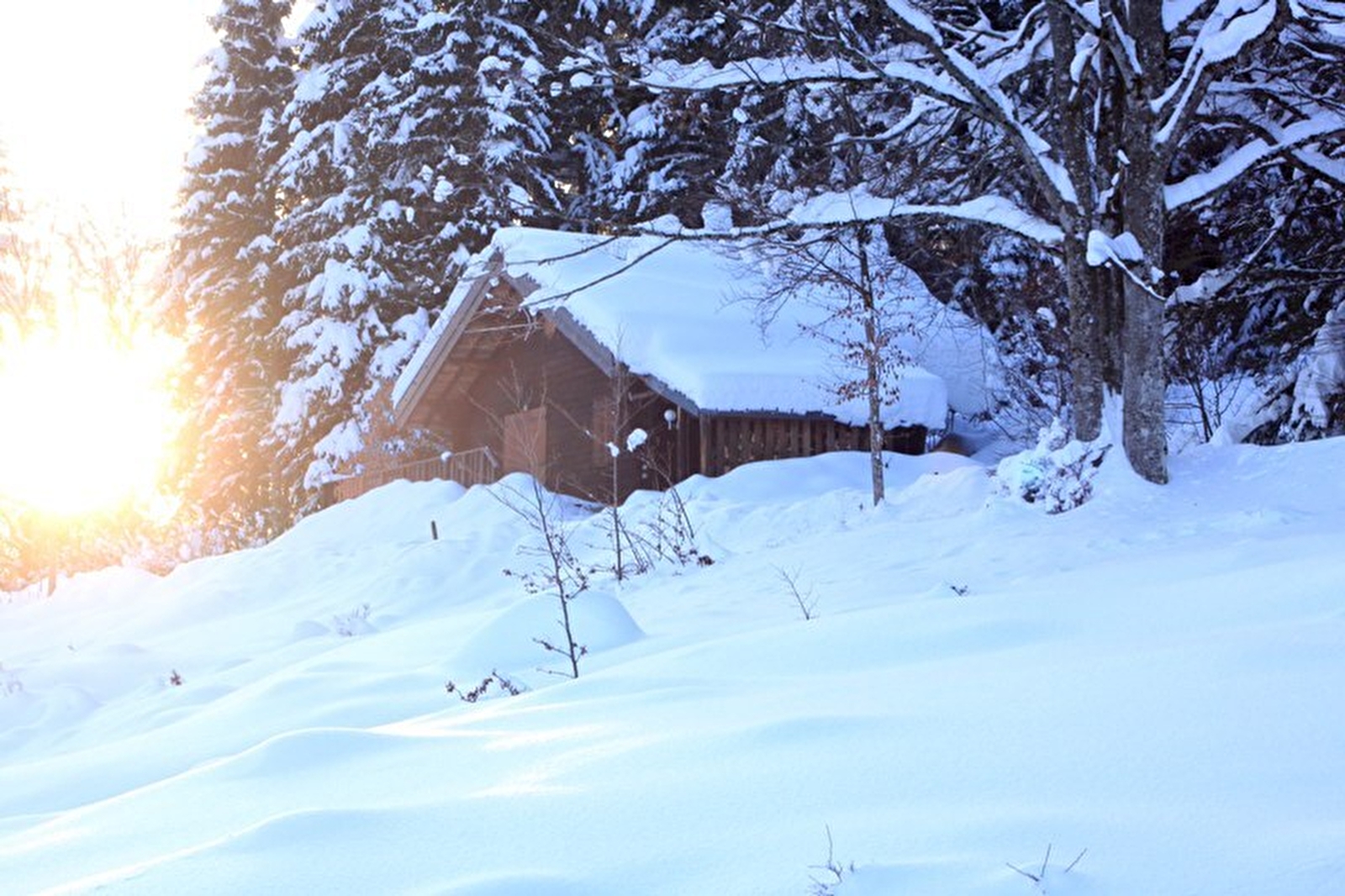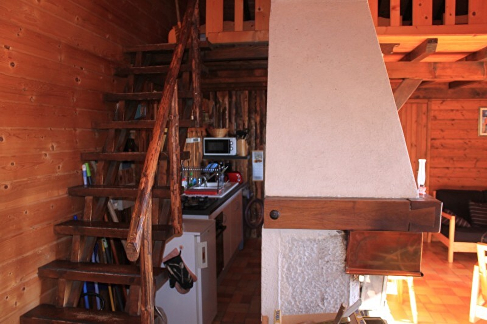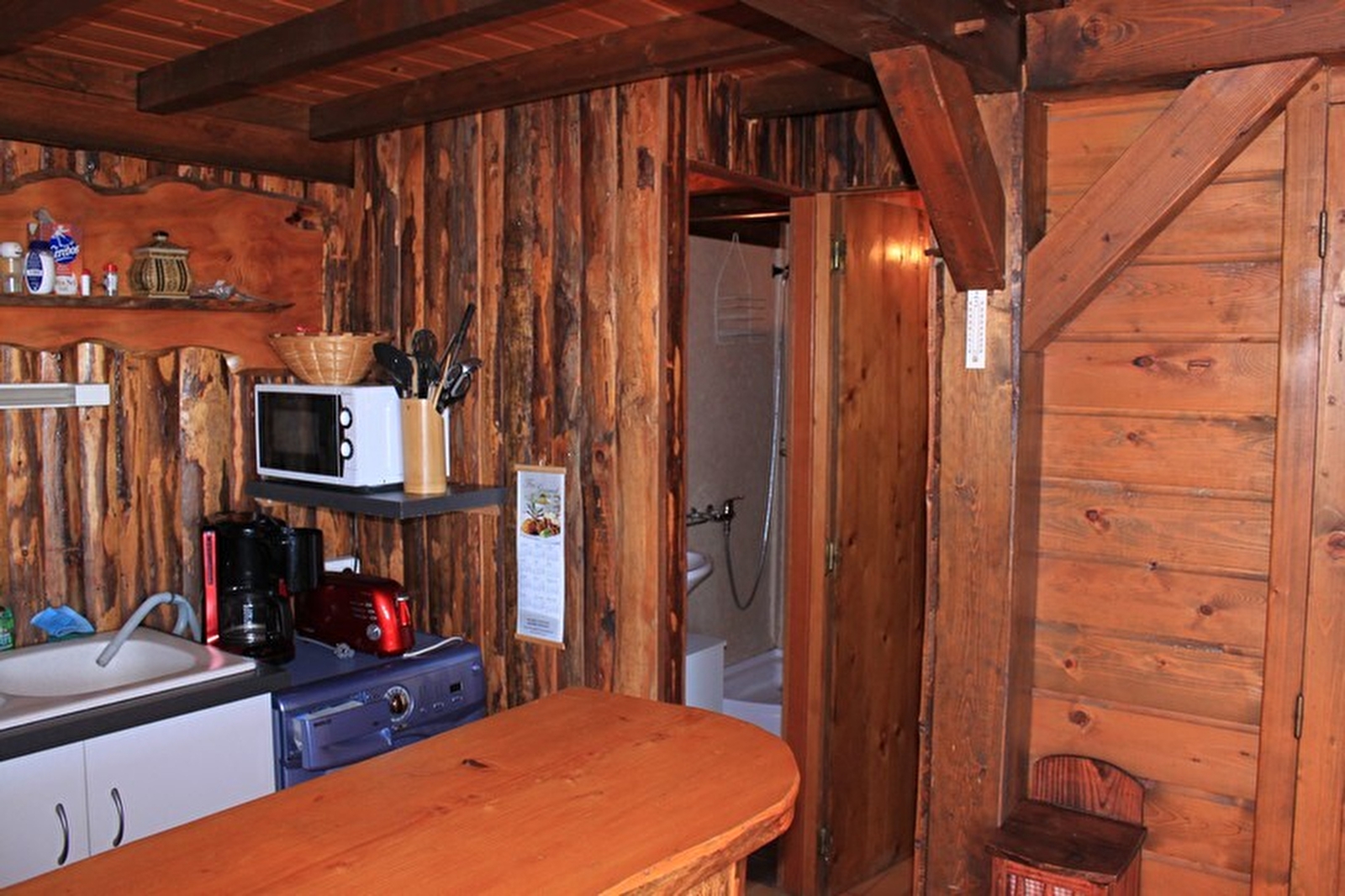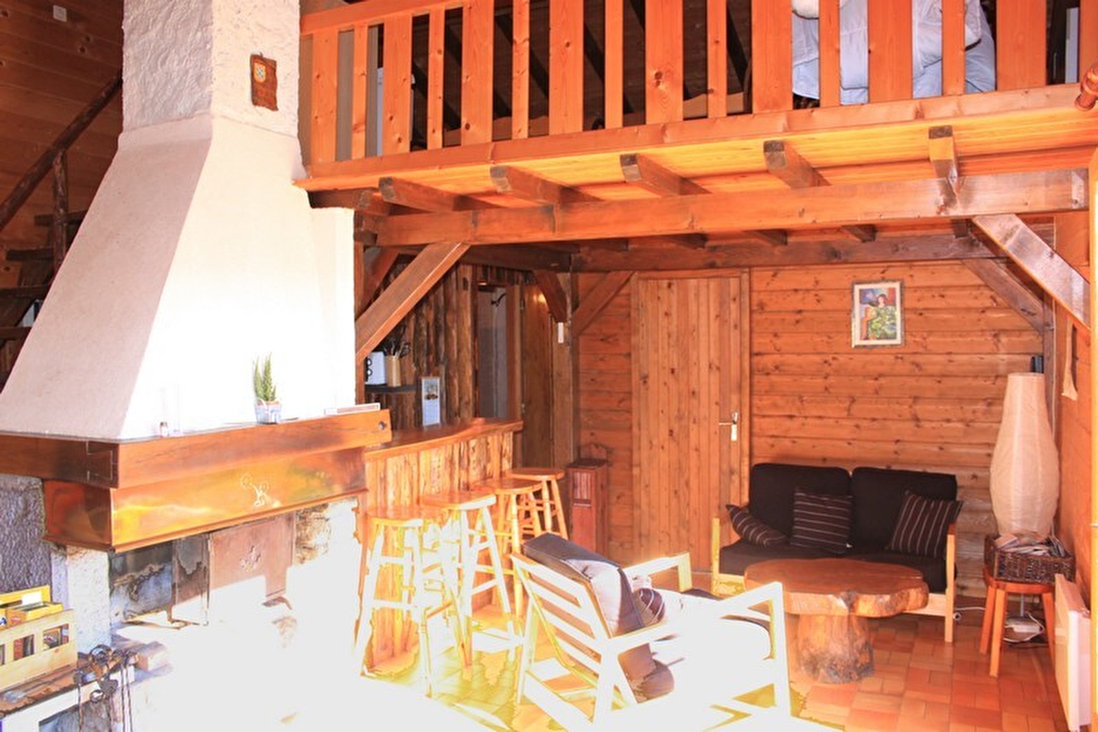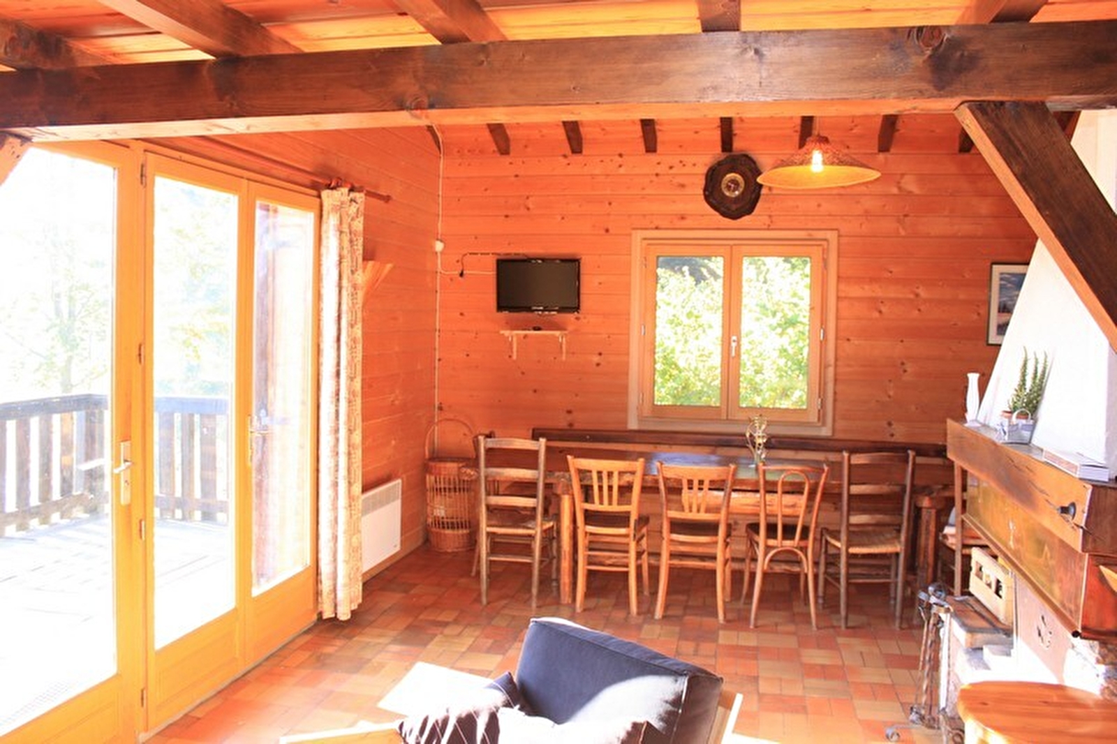 Freistehendes Chalet. Küche, Wohnzimmer, Salon. Im Obergeschoss: Mezzanine mit 1 Doppelbett, 2 Einzelbetten, Badezimmer, Zimmer 1: 1 Doppelbett, angrenzendes, nicht eingezäuntes Grundstück, Gartenmöbel, Grill. Elektrische Heizung. Nebenkosten nicht inbegriffen. Möglichkeit, auf Anfrage eine fünfte Person aufzunehmen.