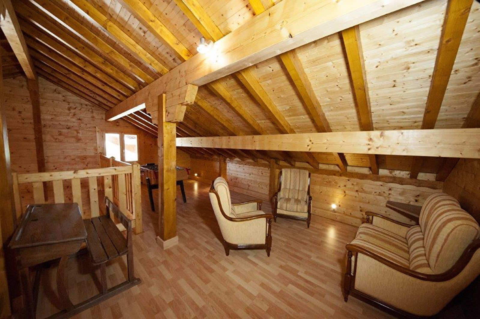 Dieses Chalet liegt nur wenige Kilometer von zahlreichen Seen und Wasserfällen, Wanderwegen und anderen unumgänglichen Sehenswürdigkeiten entfernt! Ein großer, heller Wohnraum mit offener Küche zum Wohn- und Esszimmer, Abstellraum mit Waschmaschine und Trockner, ein Badezimmer mit Badewanne, separates WC, 3 Schlafzimmer (ein Zimmer mit 2 Einzelbetten und 2 weitere mit je 1 Doppelbett, wovon eines eine Dusche mit Waschbecken hat). Obergeschoss: Mezzanin mit Tischfußball, 2 Schlafzimmer mit je einem Doppelbett und einem Einzelbett, Badezimmer mit Dusche, separates WC. Sie können die große Terrasse mit Gartenmöbeln und Grill nutzen. Überdachter Unterstand für 4 Autos. Heizung: Ein Sack Pellets wird pro Tag geliefert. Der zusätzliche Sack wird mit 9.00€ berechnet.