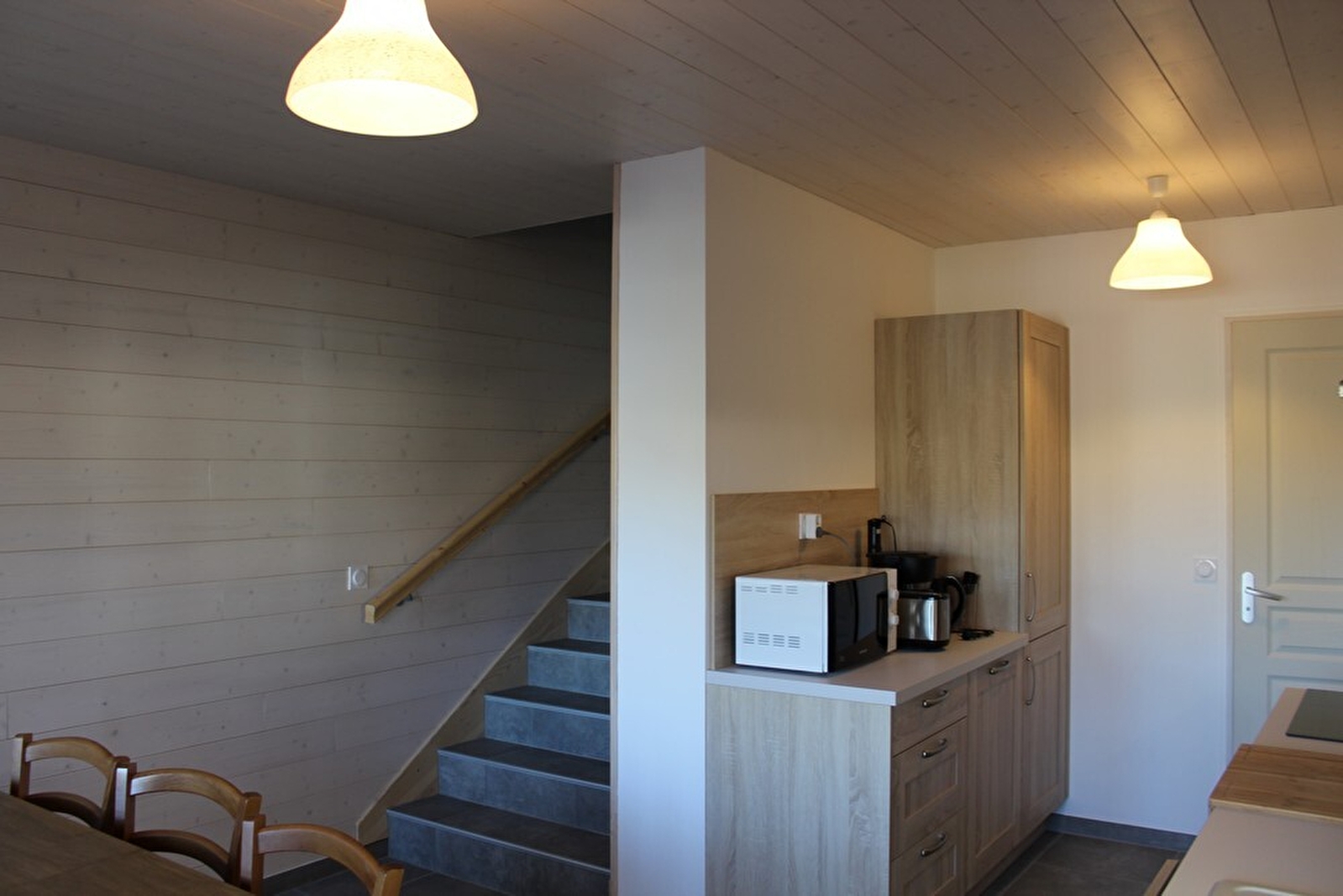 Im Hochjura, einige Kilometer von der mittelalterlichen Stadt Nozeroy entfernt, Ferienhaus neben dem Haus der Eigentümer in dem kleinen, ruhigen Dorf Arsure-Arsurette. Im Erdgeschoss, separate, voll ausgestattete Küche und Waschraum mit Waschmaschine. Unabhängige Toilette. Im Obergeschoss: Wohnzimmer mit Schlafsofa für 2 Personen und Flachbildfernseher. Ein erstes Schlafzimmer mit einem 140 cm breiten Bett und ein zweites Schlafzimmer mit 4 90 cm breiten Betten. Großes Badezimmer mit Dusche und Badewanne. Separate Toilette. Für Ihren Komfort werden die Betten bei Ihrer Ankunft gemacht. Angelteich in der Gemeinde. Möglichkeit, Fahrräder in der Garage des Eigentümers unterzustellen.