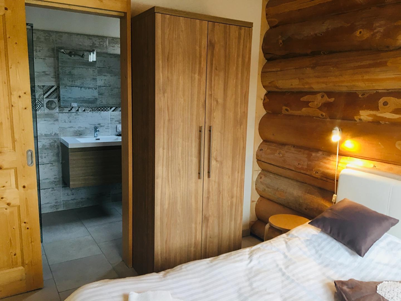 Sehr schönes freistehendes Chalet aus Rundholz im Herzen des regionalen Naturparks Haut-Jura mit Blick auf den Crêt de Chalam. Eingangshalle, Waschküche mit Waschmaschine, 1 separates WC. Heller Wohnraum mit integrierter, voll ausgestatteter Küche (Backofen, Mikrowelle, Toaster...), ausgestattet, offen zum Esszimmer und Wohnzimmer mit Schlafsofa, Holzofen. Ein 1. Schlafzimmer mit 1 Bett 140x190 mit eigenem Badezimmer (Dusche und WC). Stock: 2. Zimmer mit 1 Bett 160x200, 3. Zimmer mit 2 Einzelbetten, 4. Zimmer mit 2 Etagenbetten. Badezimmer mit Dusche und WC. Angrenzende Terrasse mit Gartenmöbeln, Sonnenschirm und Grill. Chalet nach den Normen RT 2012 gebaut. 5 Gehminuten vom Chalet entfernt finden Sie zahlreiche Geschäfte: Skiverleih, Bäckerei, Lebensmittelgeschäft, Metzgerei, Obst- und Gemüsehändler, Bar und Restaurants.