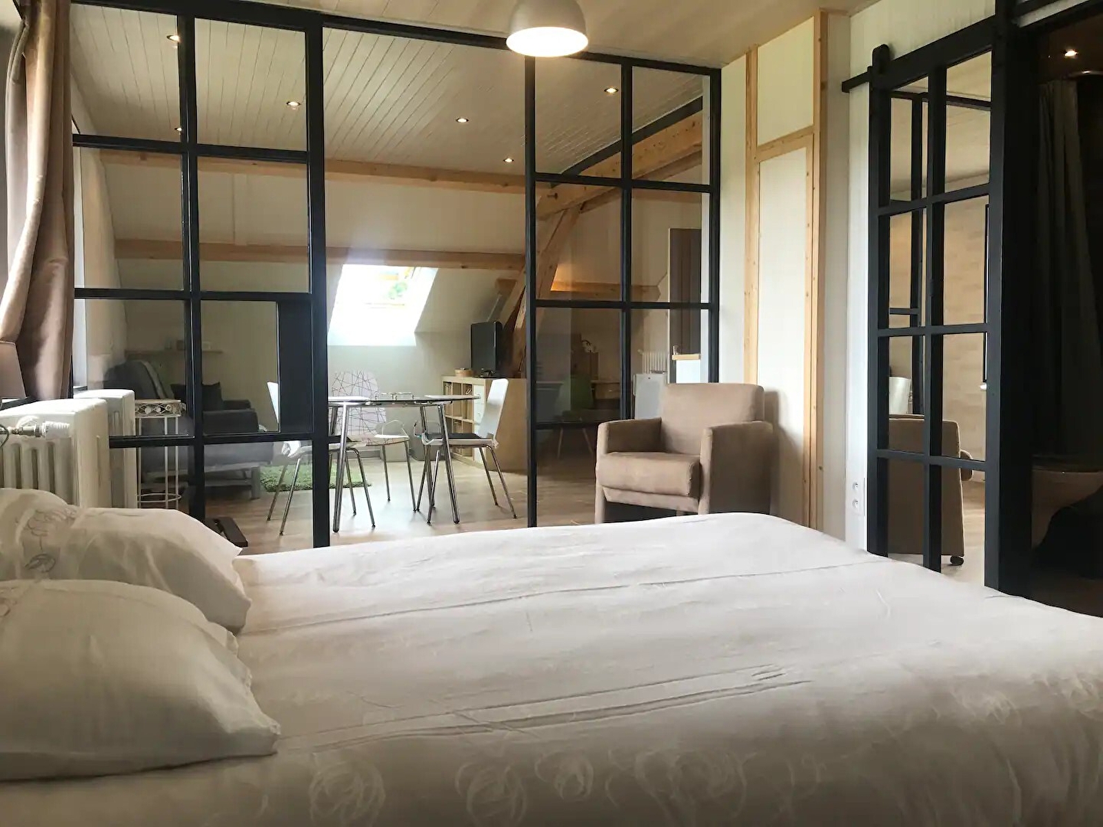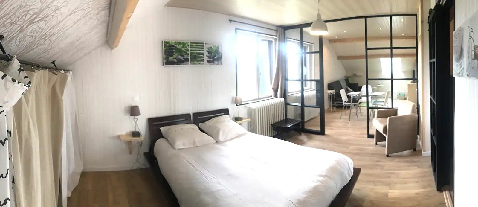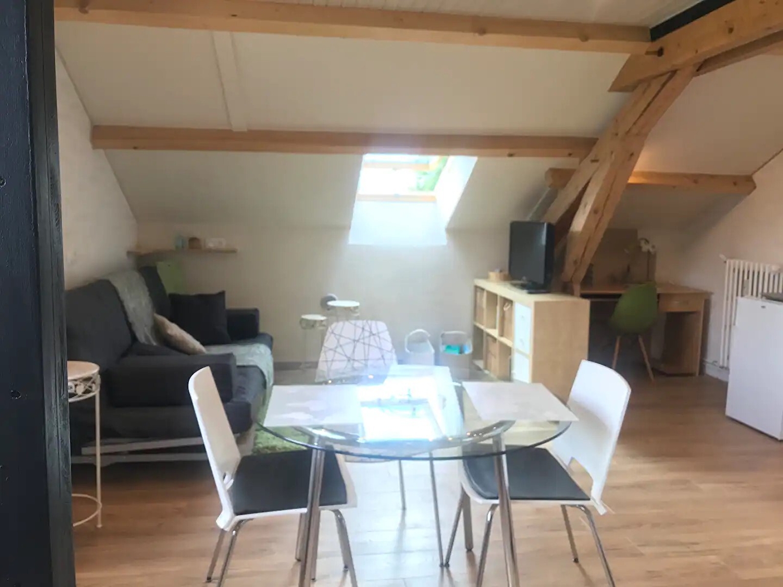 Sie werden von dieser geräumigen, gemütlichen, neu renovierten Wohnung in einem kleinen Miteigentum (3. Stock) mit einem schönen Blick auf die Monts-Jura und einem großen Garten profitieren. Sie besteht aus einem Wohnraum mit voll ausgestatteter Küche, Wohnzimmer mit Sofa, TV und Büroecke, einem Schlafzimmer mit Doppelbett und direktem Zugang zum Badezimmer (Dusche und WC).