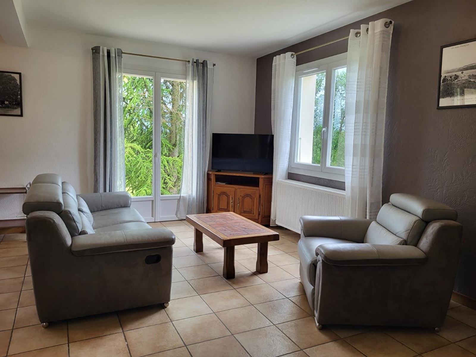 Nur wenige Minuten vom See von Chalain entfernt, besteht dieses unabhängige Haus im Erdgeschoss aus einer voll ausgestatteten Küche, einem großen Wohnraum mit Esszimmer und Wohnzimmer mit TV und Kamin, einem Schlafzimmer mit 2 Einzelbetten (90*190), die zusammengestellt werden können, einem Schlafzimmer mit 1 Doppelbett (160*200), einem Badezimmer mit begehbarer Dusche und einer separaten Toilette. Im Obergeschoss befindet sich ein Schlafzimmer mit einem Doppelbett (140*190). Für Ihren Komfort werden die Betten bei Ihrer Ankunft gemacht. Im Außenbereich können Sie auf der Terrasse mit Gartenmöbeln, Grill und Liegestühlen angenehme Momente mit der Familie oder mit Freunden verbringen. Ein Bouleplatz und ein Spielplatz befinden sich direkt neben der Unterkunft. Die Lage ist ideal, um die Region der Seen zu erkunden: Aussichtspunkt der 4 Seen, Wasserfälle von Hérisson, See von Clairvaux-les-lacs. Sie können auch die Herstellung des Comté-Käse in der Fruitière du temps in Pont-de-Poitte kennenlernen. Hinweis: Das Haus ist über eine Treppe mit 8 Stufen erreichbar.