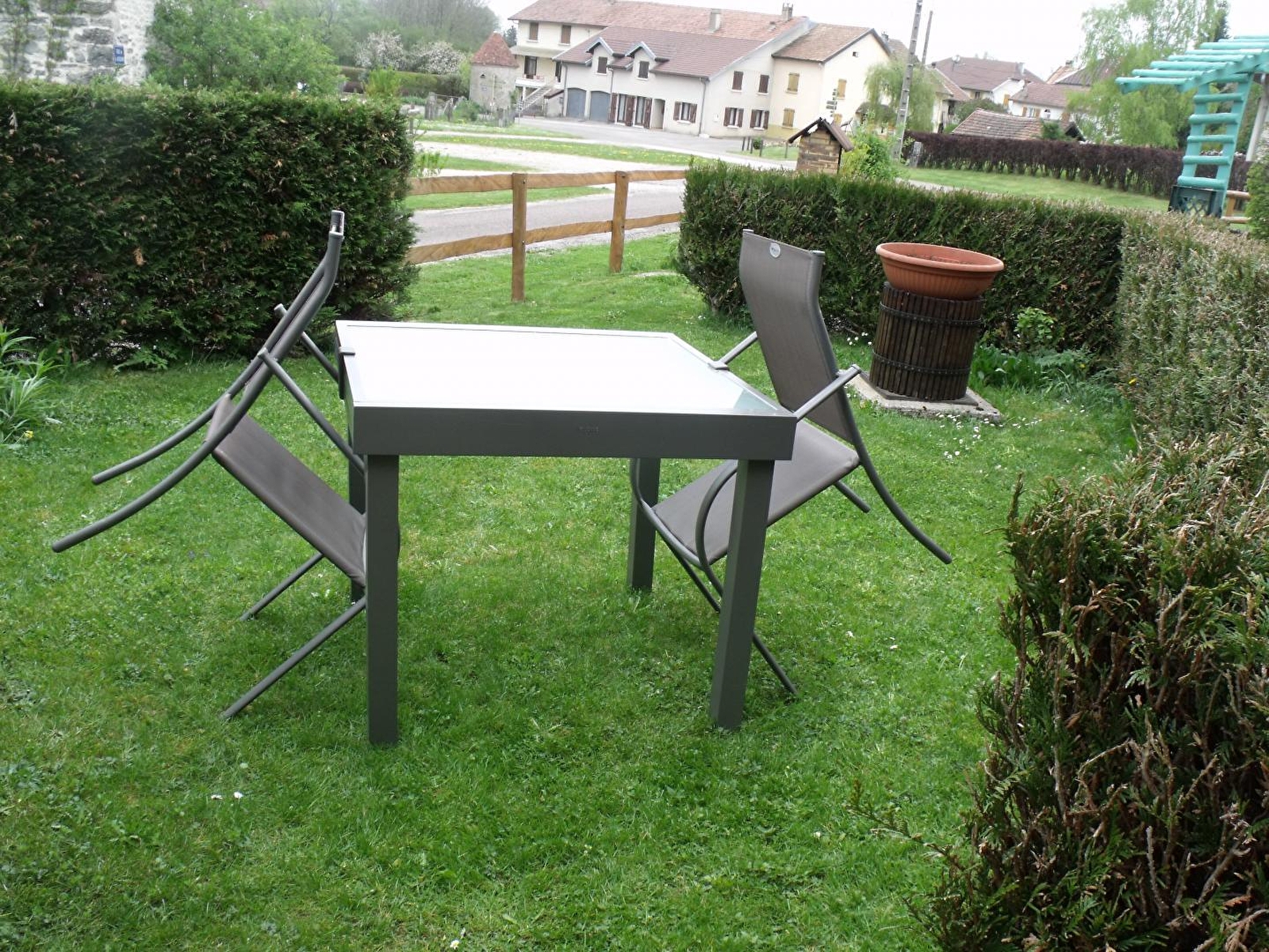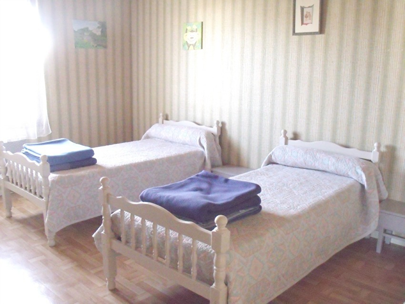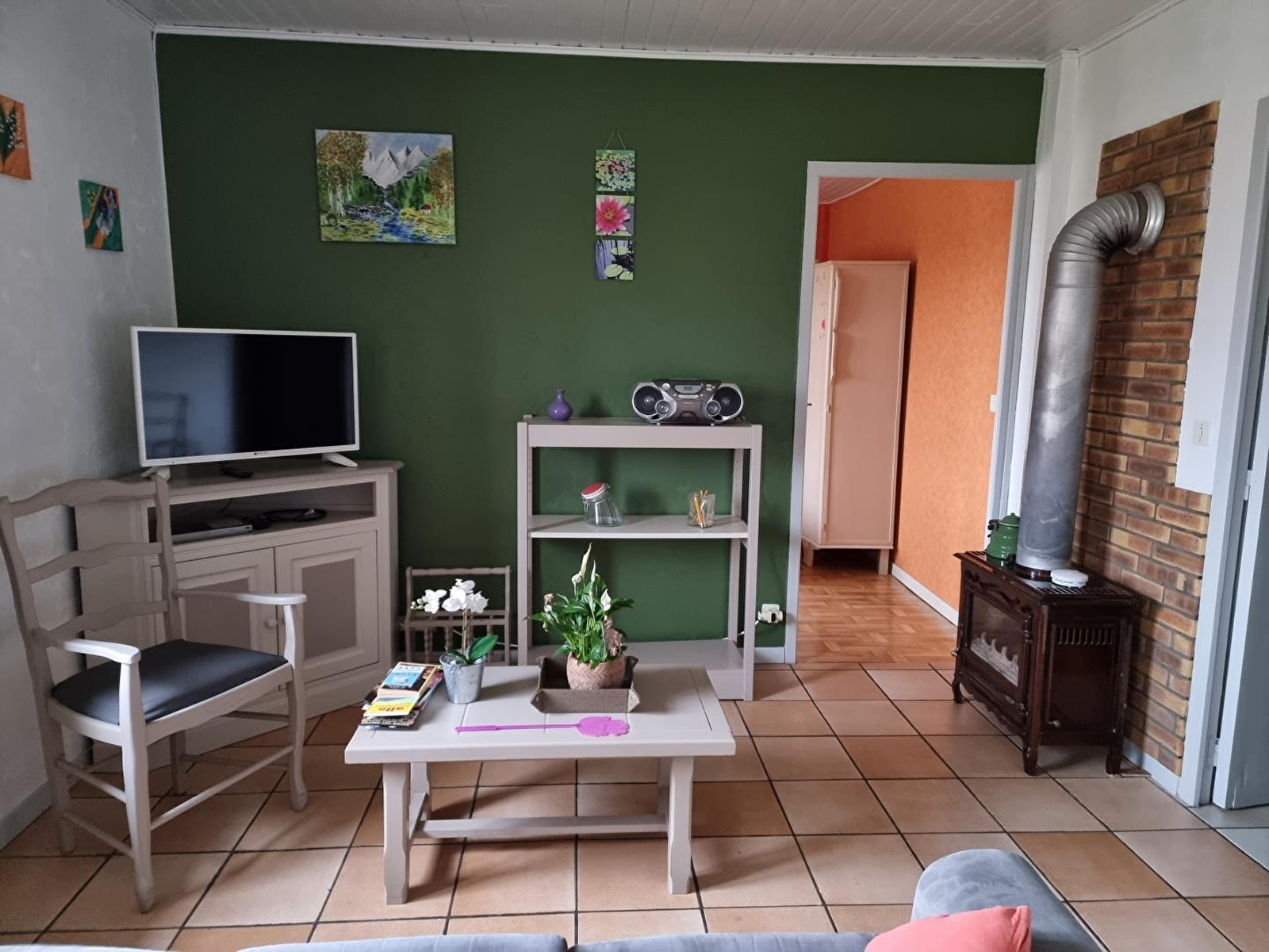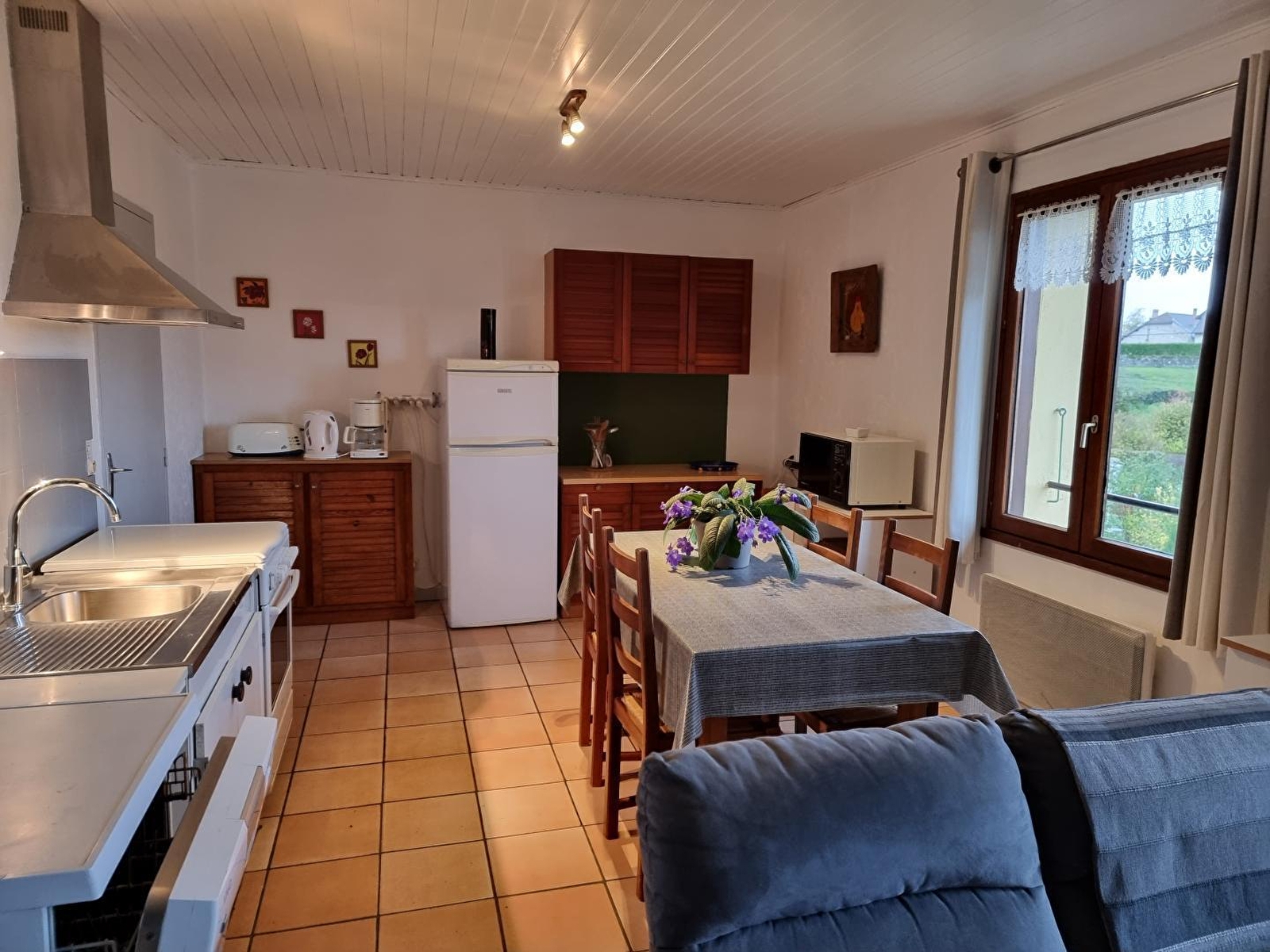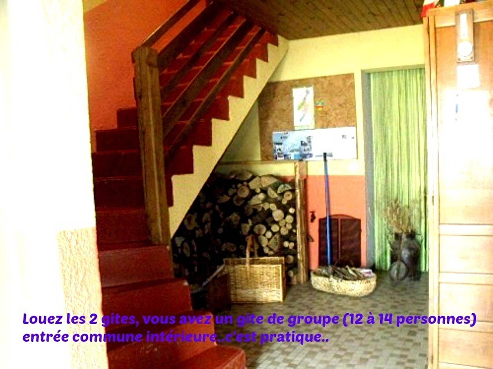 Logement à l'étage d'une maison mitoyenne qui abrite un autre gîte. Cuisine-séjour avec poêle à bois, canapé convertible, ch1: 1 lit 2 pl, ch2: 1 lit 2 pl, ch3: 2 lits 1 pl, salle d'eau. Cour commune non close, salon de jardin, barbecue commun. Chauffage électrique. Charges non comprises. A disposition: chaise bébé, 1 lit d'appoint. Draps: 5€/paire, option ménage: 30€. Bois vendu. Taxe de séjour: 0,30€ par pers et par nuit.