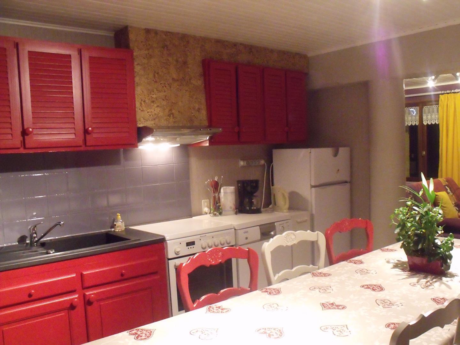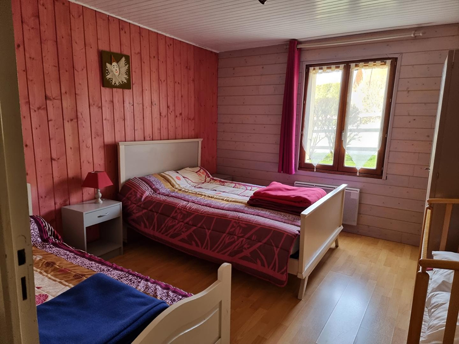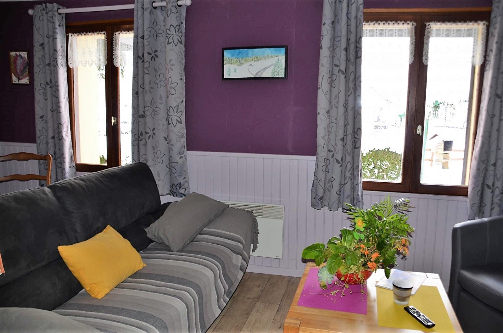 Unterkunft im Erdgeschoss eines Reihenhauses, das eine weitere Unterkunft beherbergt. Wohnküche mit Holzofen, Sofa, Zimmer 1: 1 Doppelbett (160*200), Zimmer 2: 1 Einzelbett und 1 Doppelbett (140*190), Zimmer 3: 1 Doppelbett (160*200), Badezimmer, separates WC, Abstellraum. Gemeinsamer, nicht eingezäunter Hof, Gartenmöbel, gemeinsamer Grill. Elektrische Heizung. Nebenkosten nicht inbegriffen. Zur Verfügung: Babystuhl, 1 Zusatzbett, DVD-Bluray-Player. Holz wird verkauft. Nur 1 Haustier erlaubt.