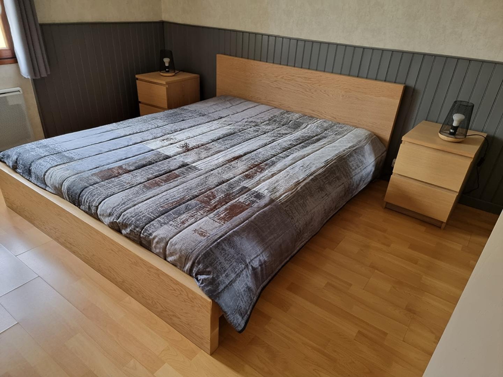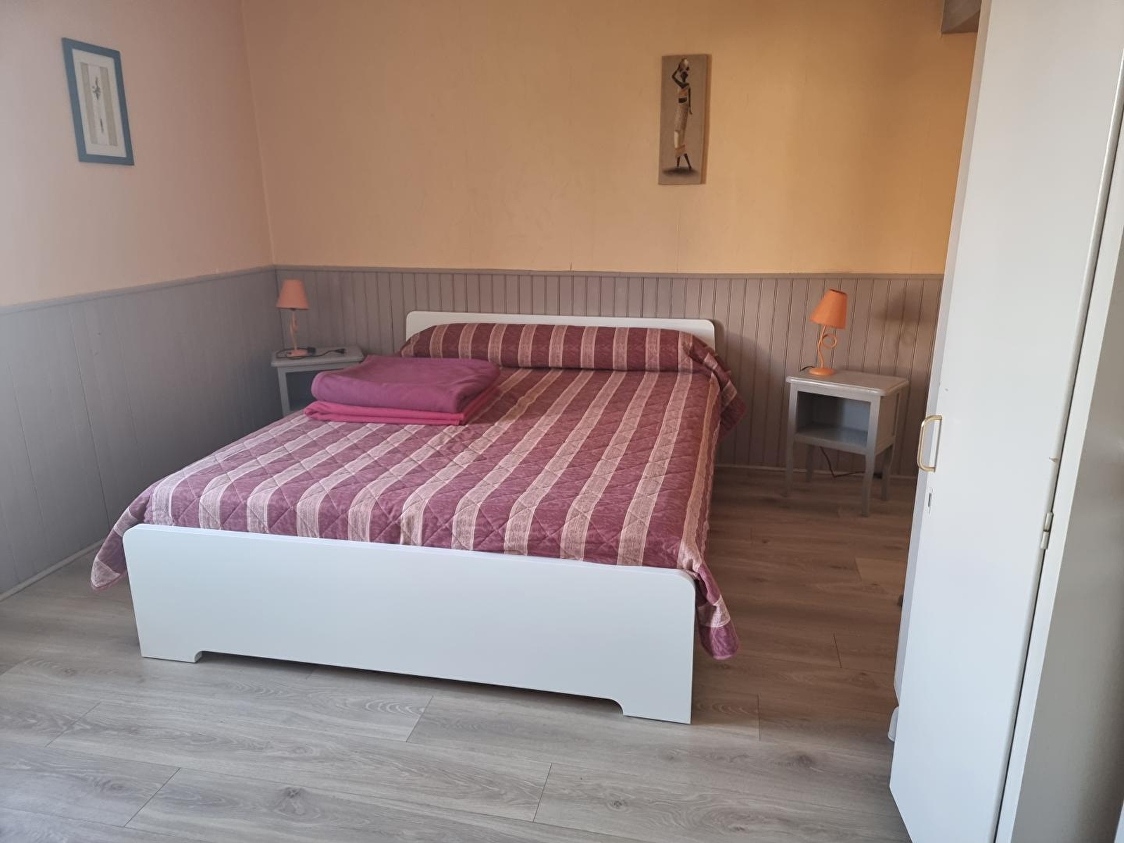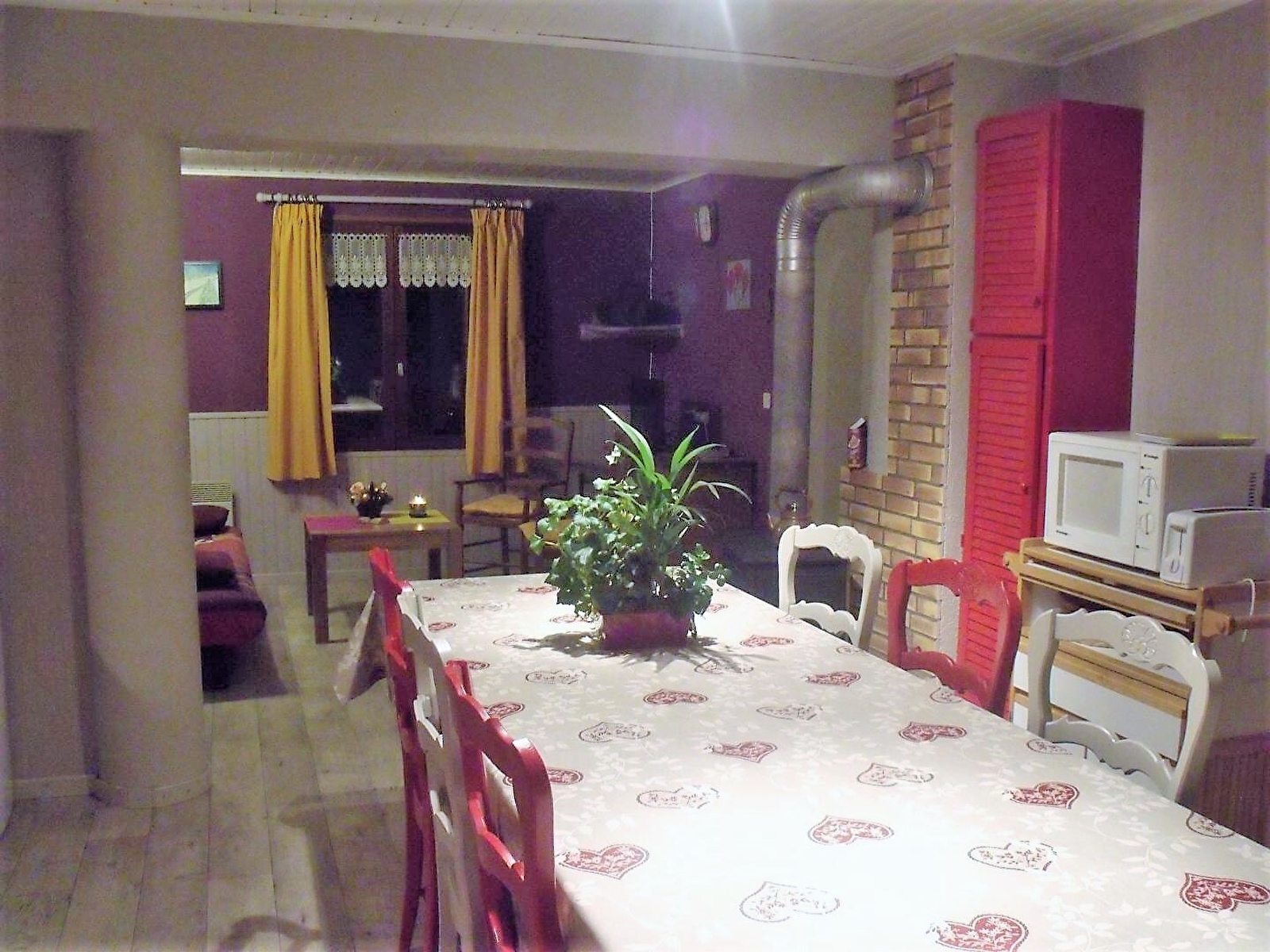 Unterkunft im Erdgeschoss eines Reihenhauses, das eine weitere Unterkunft beherbergt. Wohnküche mit Holzofen, Sofa, Zimmer 1: 1 Doppelbett (160*200), Zimmer 2: 1 Einzelbett und 1 Doppelbett (140*190), Zimmer 3: 1 Doppelbett (160*200), Badezimmer, separates WC, Abstellraum. Gemeinsamer, nicht eingezäunter Hof, Gartenmöbel, gemeinsamer Grill. Elektrische Heizung. Nebenkosten nicht inbegriffen. Zur Verfügung: Babystuhl, 1 Zusatzbett, DVD-Bluray-Player. Holz wird verkauft. Nur 1 Haustier erlaubt.