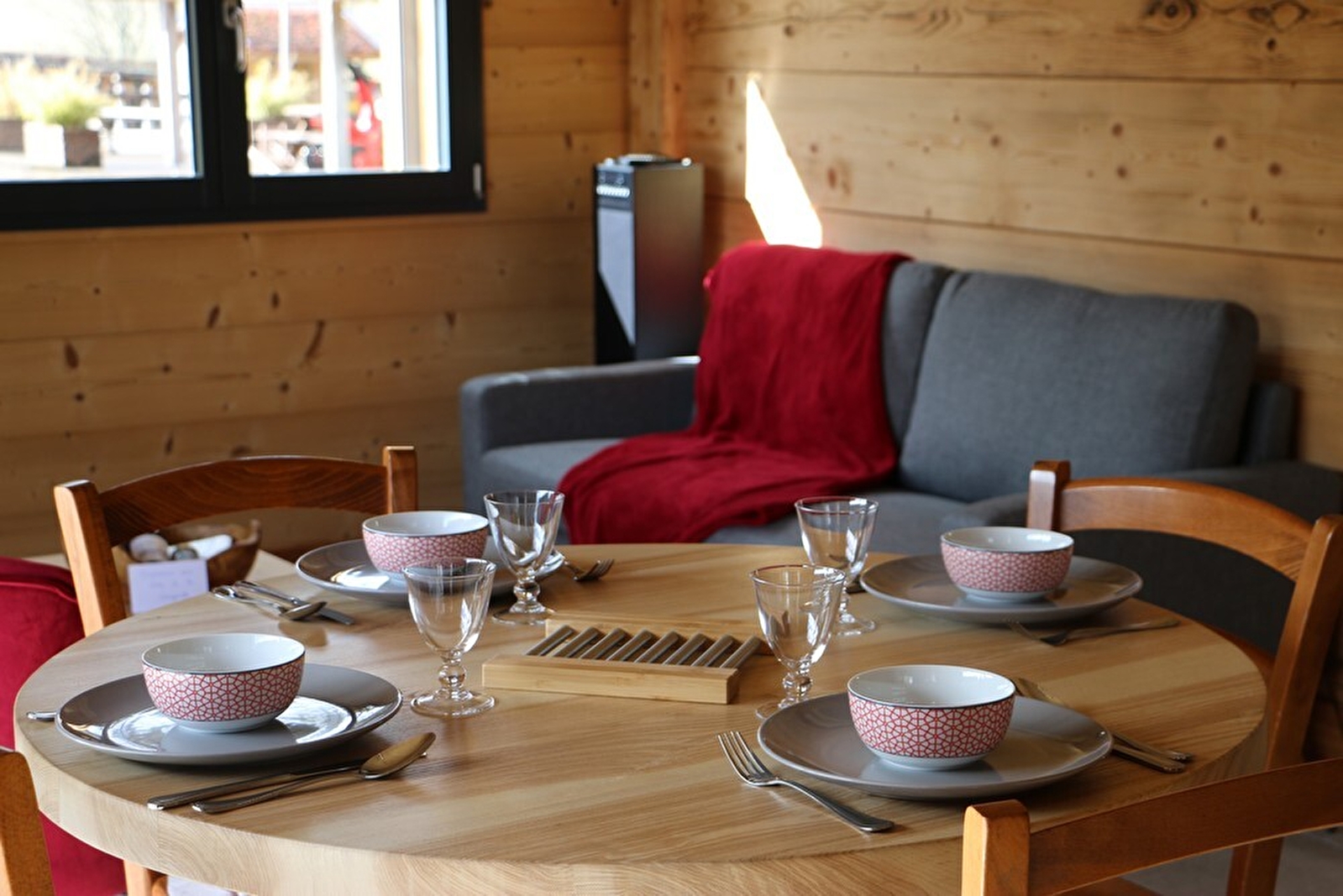 Ideal gelegen im Herzen des Regionalen Naturparks Haut Jura, zwischen Seengebiet und Bergen, um Sommer wie Winter davon zu profitieren. Entdecken Sie diese hübschen, komplett neuen Chalets, von denen eines für Personen mit eingeschränkter Mobilität zugänglich ist. Das erste Chalet für 4 Personen besteht aus einem schönen Wohnraum mit voll ausgestatteter Küchenzeile und einem Wohnzimmer mit Sofa, Flachbildfernseher und Bluetooth-Hifi-Anlage. Ein Elternschlafzimmer mit einem Bett von 160x200cm und ein kleines Zimmer (6m²) mit 2 Etagenbetten. Badezimmer (italienische Dusche), separates WC. Für die Wagemutigen gibt es einen zweiten Entspannungsbereich im Zwischengeschoss, der über eine Leiter erreichbar ist, oder ein BZ-Sofa, das aufgestellt ist. Terrasse mit Gartenmöbeln, Grill und Liegestühlen. Das zweite Chalet für 6 Personen besteht aus einem schönen Wohnraum mit voll ausgestatteter Küche, einer Leseecke und einem Essbereich. Ein erstes Schlafzimmer mit einem Bett von 160X200. Badezimmer mit großer begehbarer Dusche und Doppelwaschbecken. Separate Toilette. Im Obergeschoss, Wohnzimmer im Zwischengeschoss mit Sofa, Sesseln und Flachbildfernseher. Ein zweites Schlafzimmer mit 3 Betten von 90 cm und ein drittes Schlafzimmer mit einem Bett von 160X200 cm. Sie können eine schöne Terrasse mit Gartenmöbeln und Grill nutzen. Angrenzend befindet sich ein großes Grundstück mit Kinderspielplatz und im Sommer können Sie den halb unterirdischen und beheizten Pool der Eigentümer nutzen (Durchmesser 7,5 m - Tiefe 1,20 m). Für Ihren Komfort werden Ihnen Bettwäsche und Handtücher zur Verfügung gestellt. Warten Sie nicht länger mit Ihrer Reservierung!