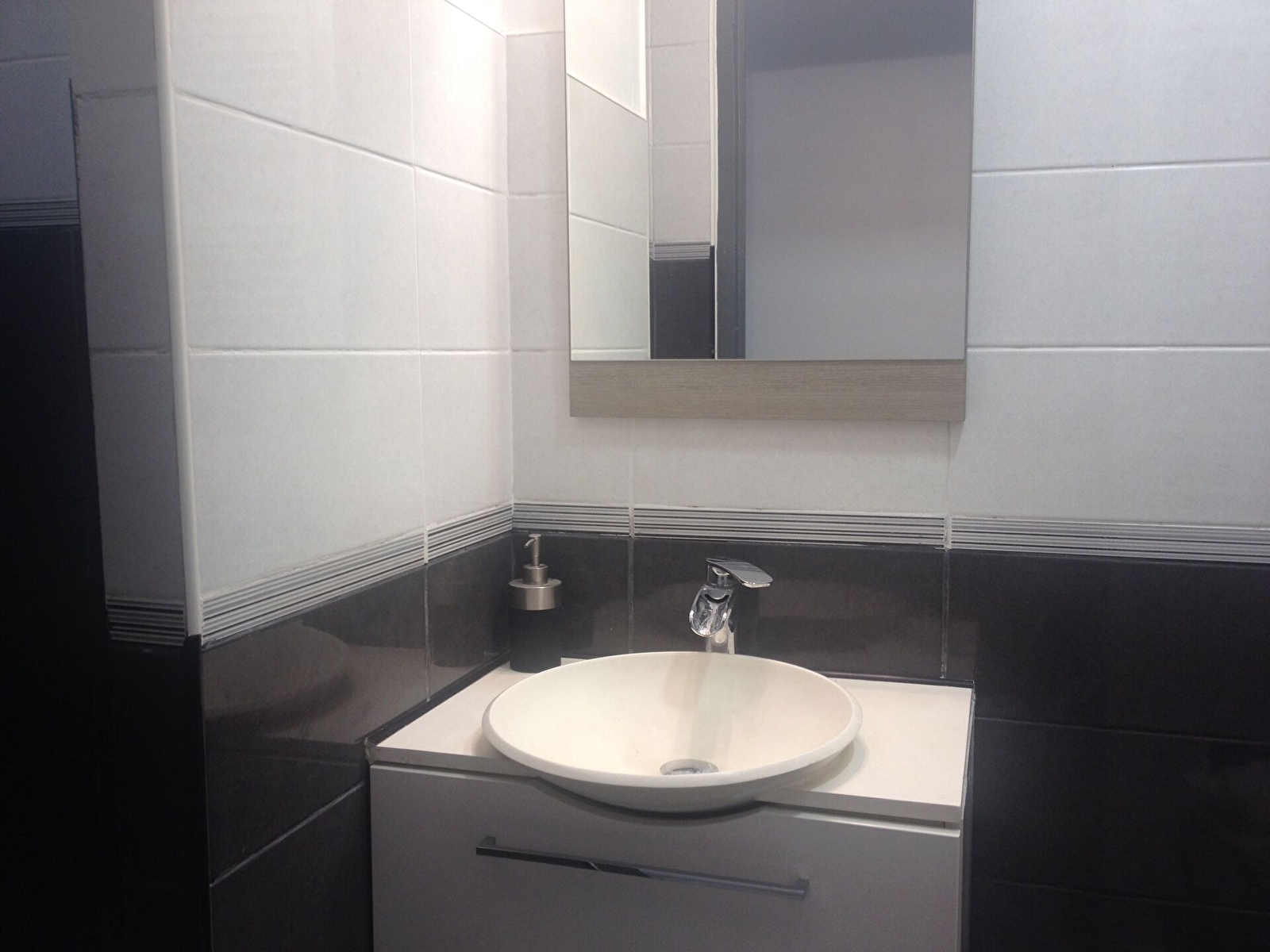 Die größte ist im Erdgeschoss eingerichtet und verfügt über einen separaten Eingang, eine Halle, die zu einem großen Schlafzimmer führt, ein 20 m² großes Wohnzimmer mit einem 160 cm breiten Bett, eine ausgestattete Küche und ein Badezimmer (Dusche, Waschbecken und WC).
