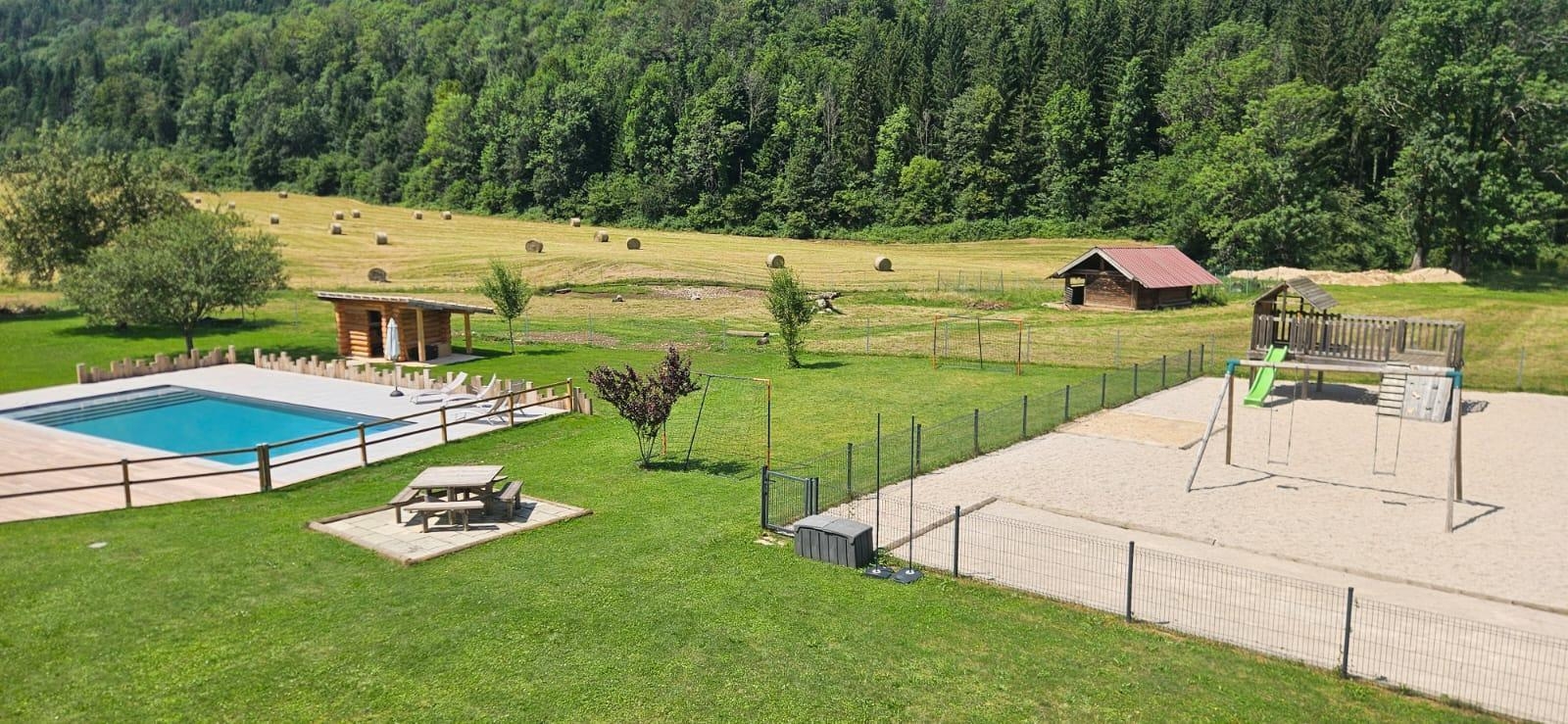 Ideal gelegen im Herzen des Regionalen Naturparks Haut Jura, zwischen Seengebiet und Bergen, um Sommer wie Winter davon zu profitieren, entdecken Sie dieses hübsche, komplett neue Chalet, das für Personen mit eingeschränkter Mobilität zugänglich ist. Es besteht aus einem schönen Wohnraum mit voll ausgestatteter Küche, einer Leseecke und einem Essbereich. Ein erstes Schlafzimmer mit einem Bett von 160X200. Badezimmer mit großer begehbarer Dusche und Doppelwaschbecken. Separate Toilette. Im Obergeschoss, Wohnzimmer im Zwischengeschoss mit Sofa, Sesseln und Flachbildfernseher. Ein zweites Schlafzimmer mit 3 Betten von 90 cm und ein drittes Schlafzimmer mit einem Bett von 160X200 cm. Sie können eine schöne Terrasse mit Gartenmöbeln und Grill nutzen. Angrenzend befindet sich ein großes Grundstück mit Kinderspielplatz und Bouleplatz. Im Sommer können Sie den beheizten, in die Erde eingelassenen Pool der Eigentümer nutzen. Für Ihren Komfort werden Ihnen Bettwäsche und Handtücher zur Verfügung gestellt. Warten Sie nicht länger mit Ihrer Reservierung!